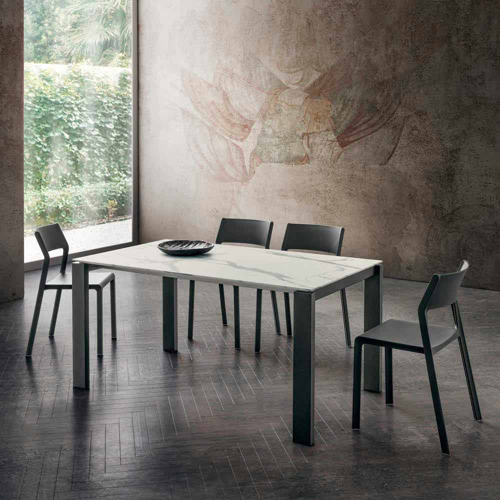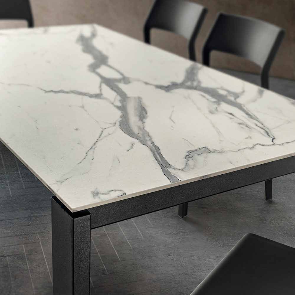 Tavolo cucina in hpl effetto marmo con struttura in metallo Made in Italy.