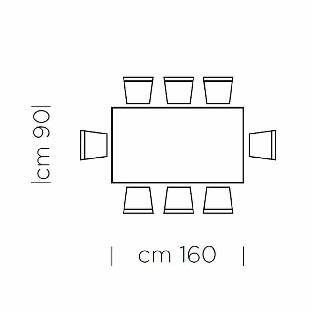 - L 160 x P 90 x H 75,3 cm (8 posti);