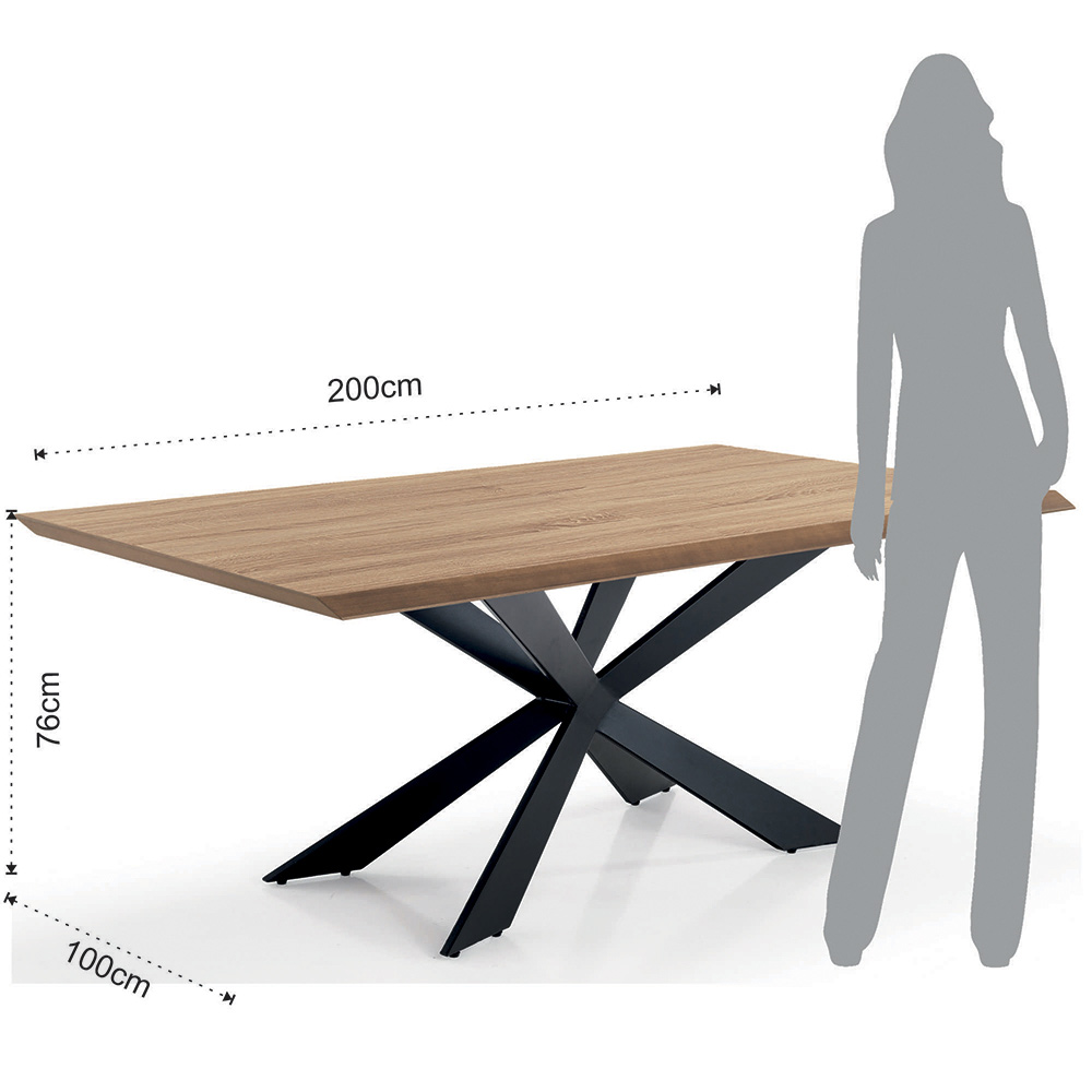 Tavolo da pranzo in mdf finitura rovere e metallo verniciato nero.