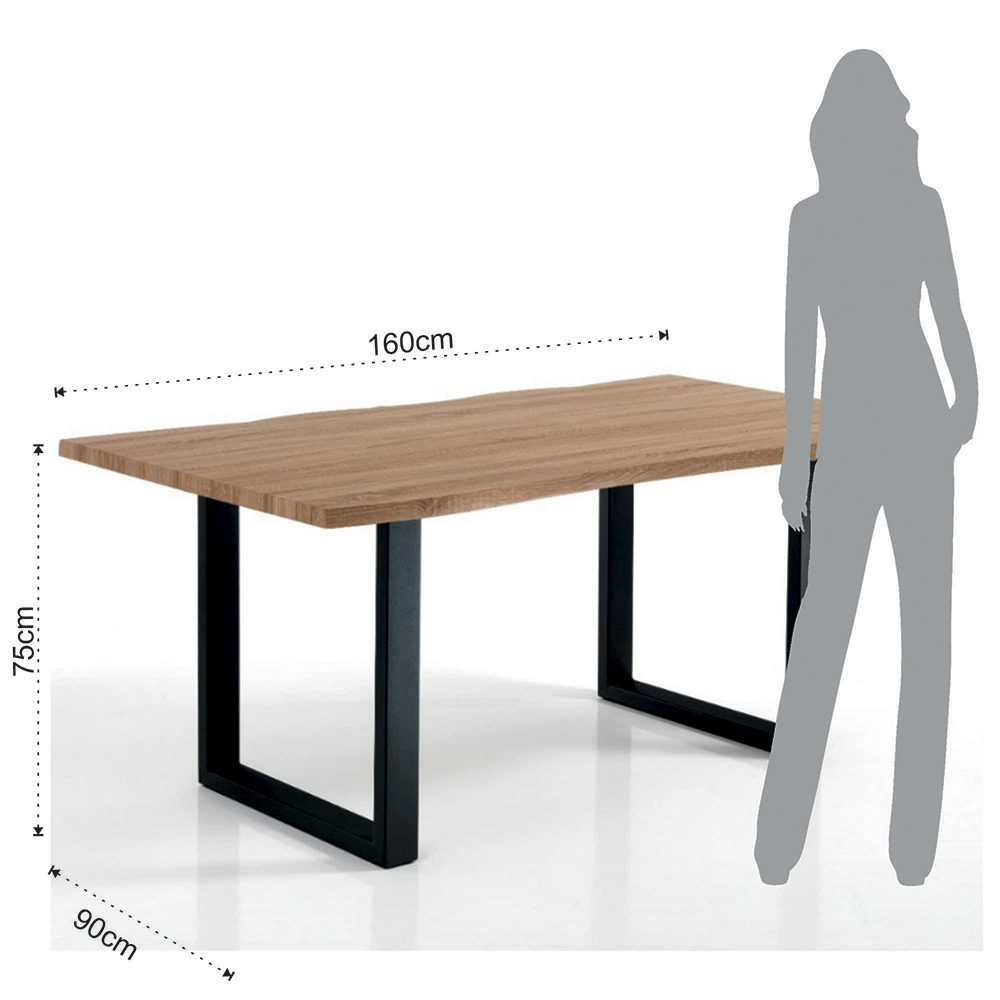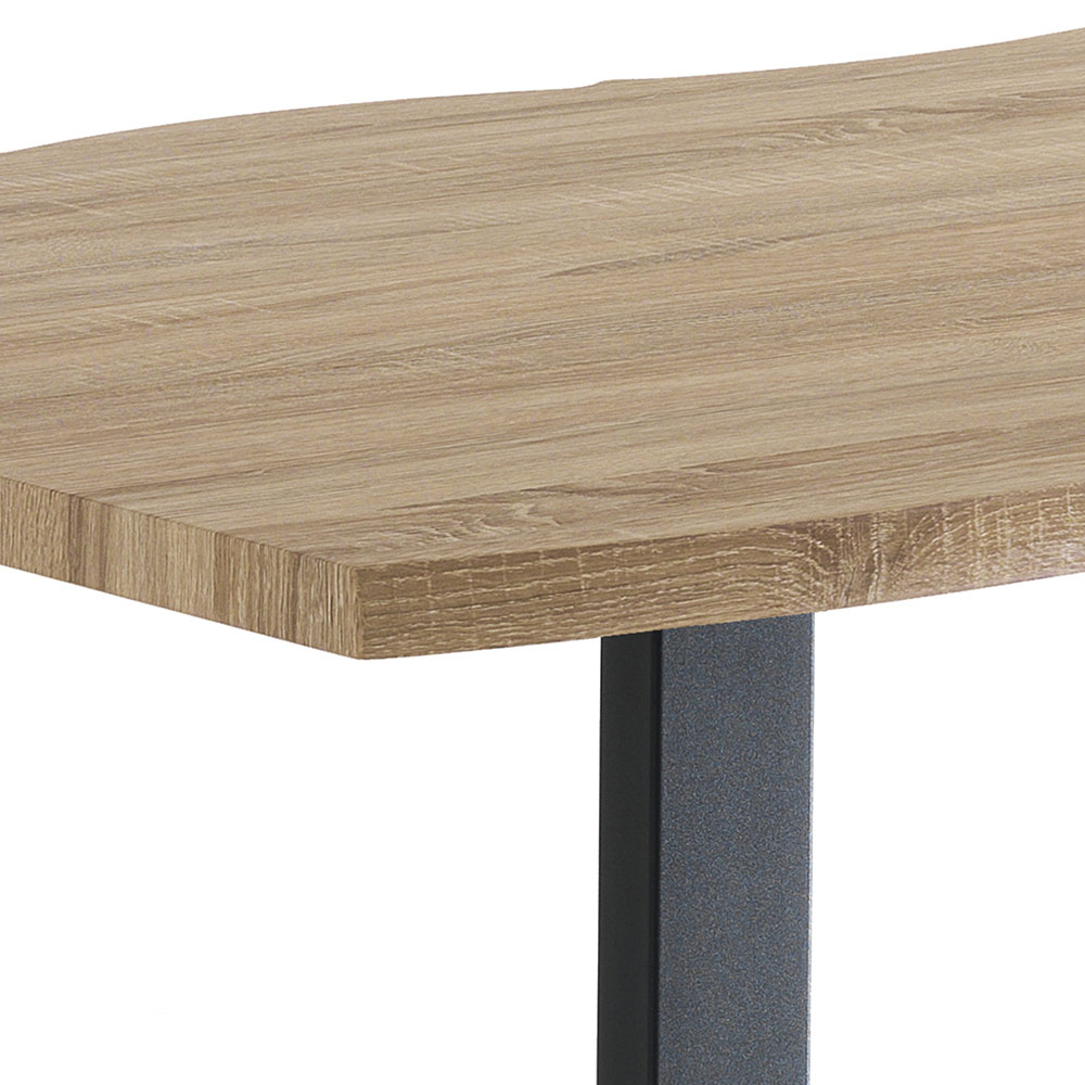 Tavolo da pranzo in mdf finitura rovere con gambe in acciaio nero.