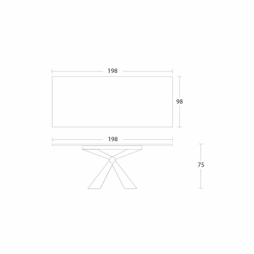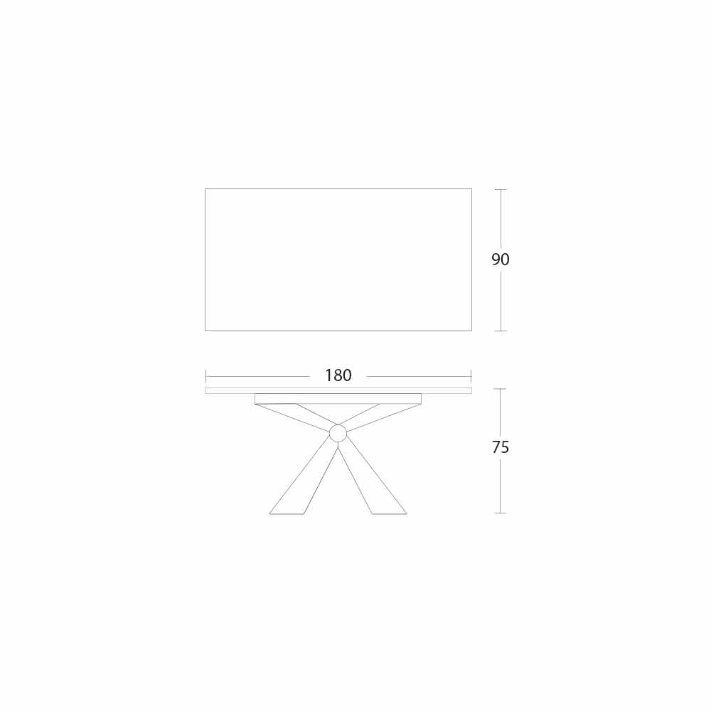 Tavolo da pranzo in ceramica laminam e base con nodo in metallo made in Italy.