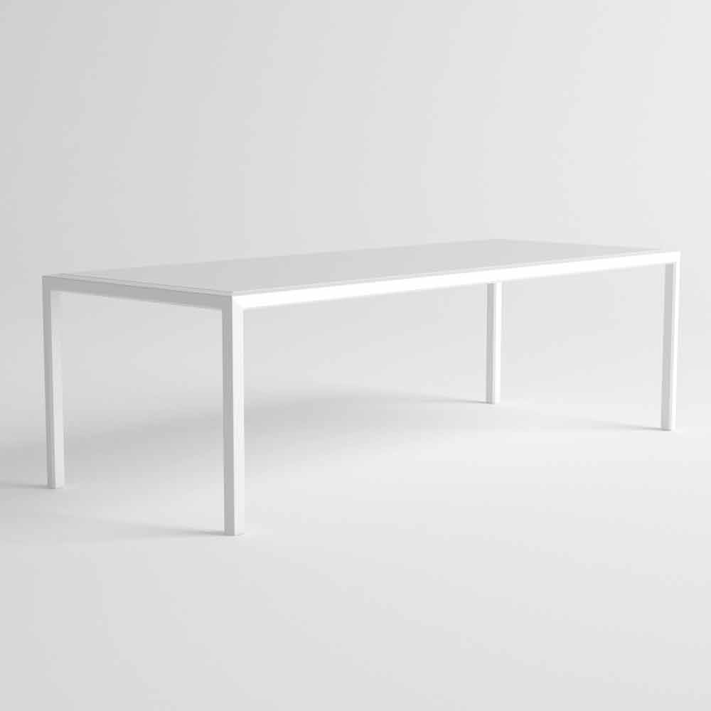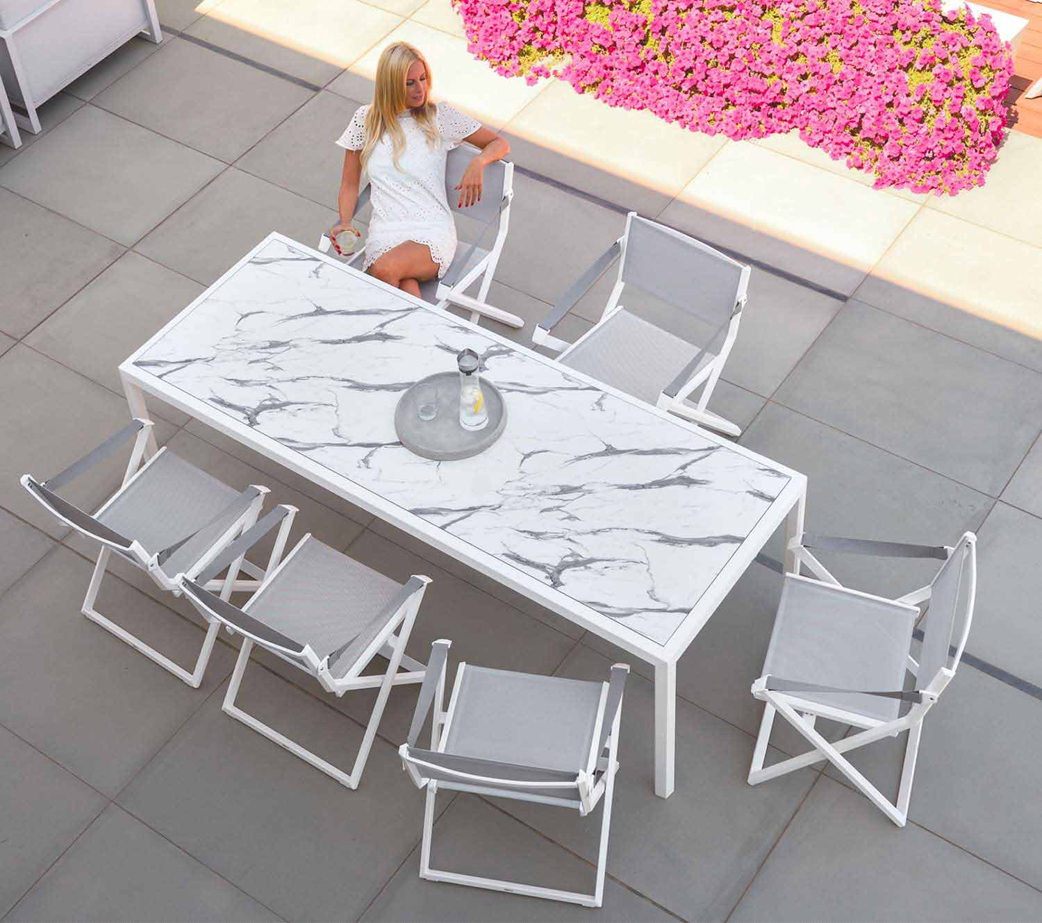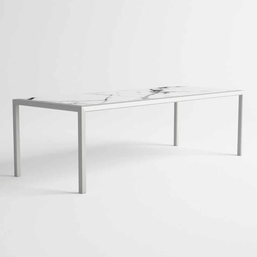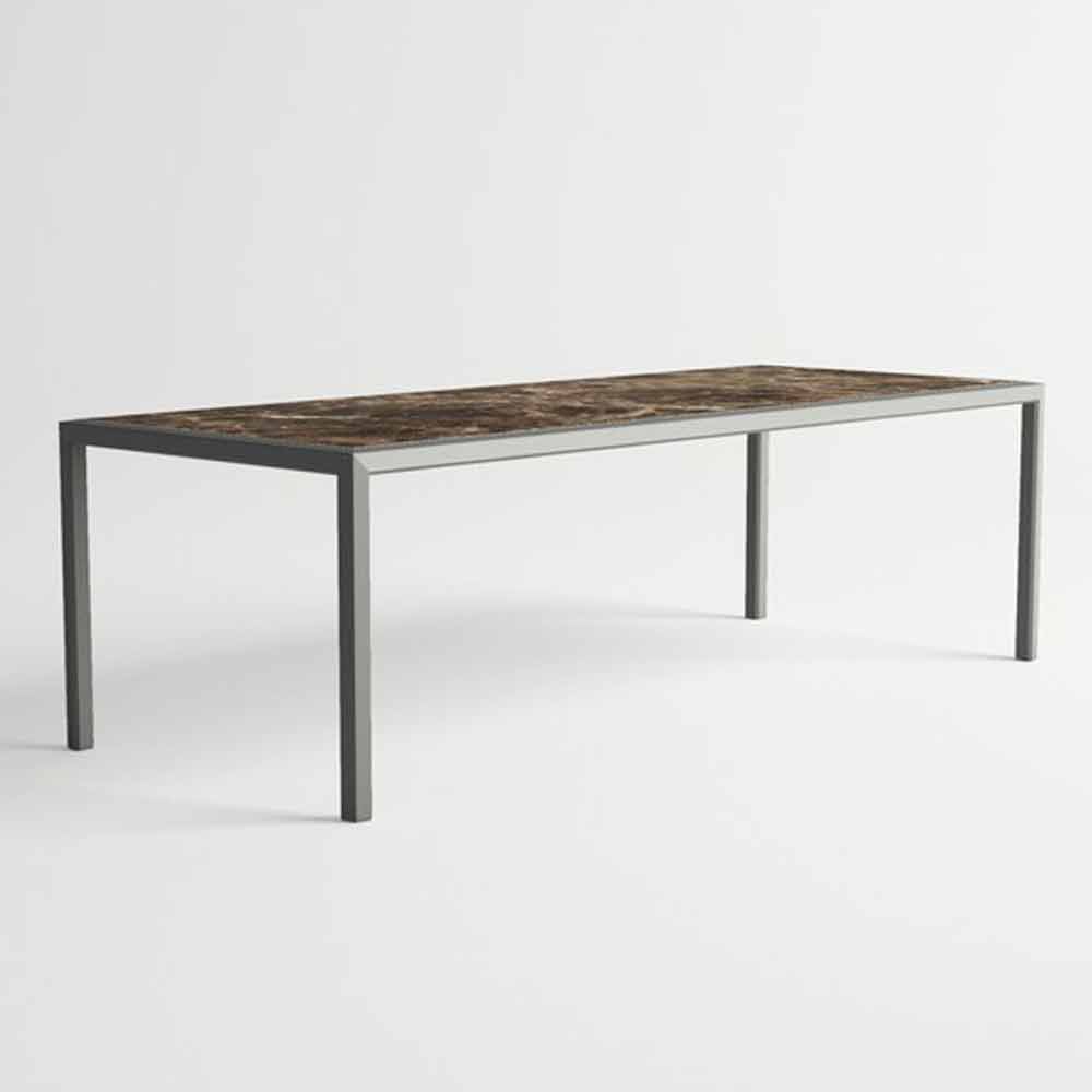 Tavolo da esterno moderno, struttura in alluminio e piano in HPL laminato, di design.