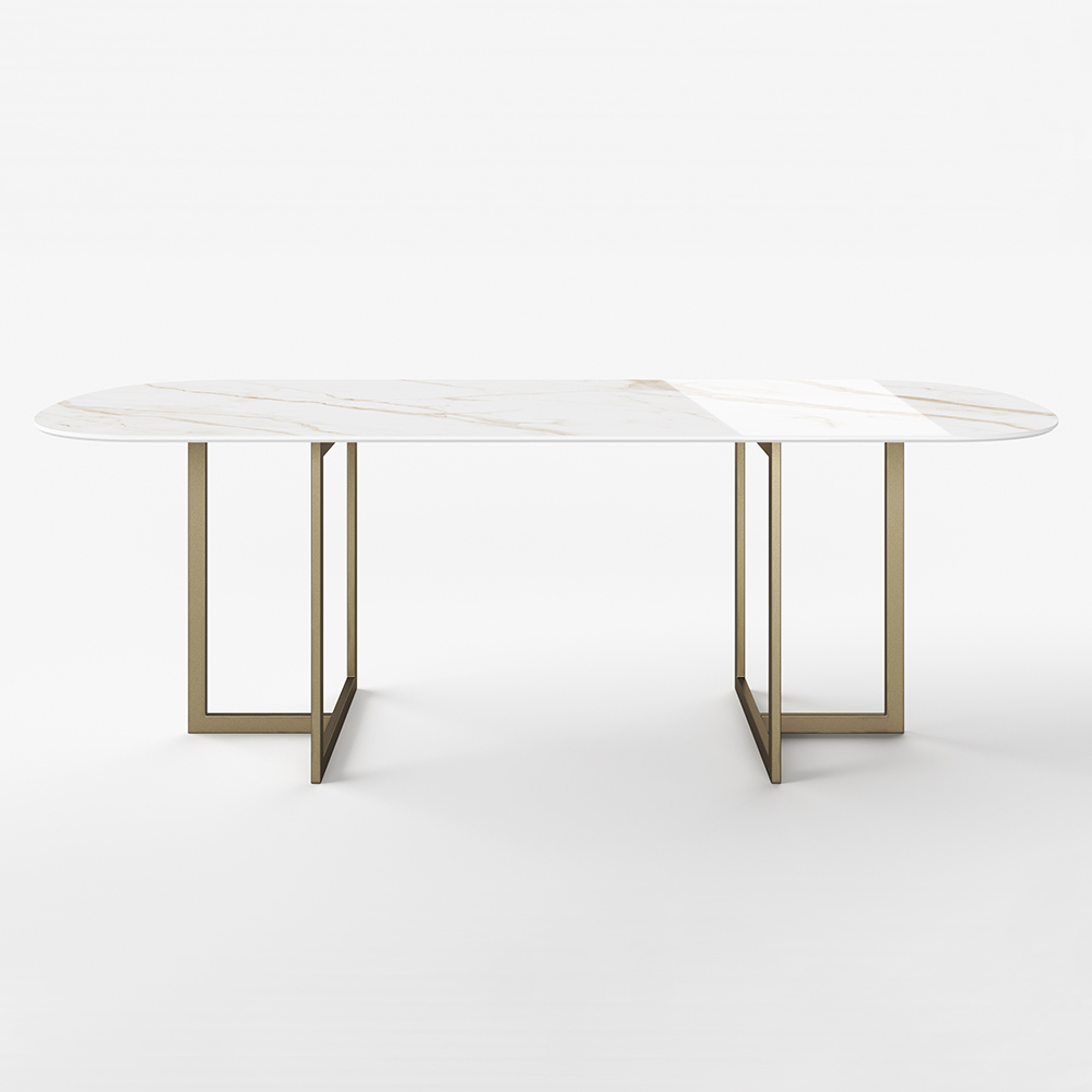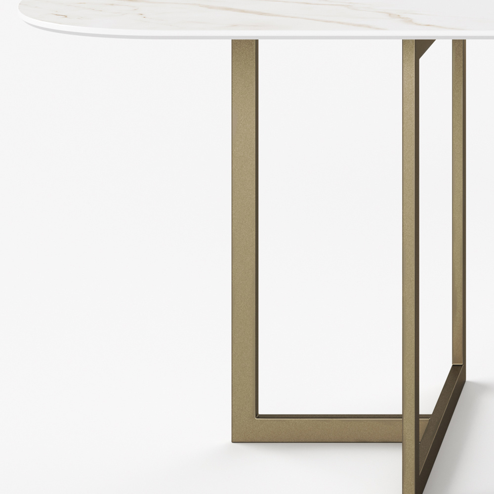Tavolo da pranzo in gres porcellanato effetto marmo e metallo Made in Italy.
