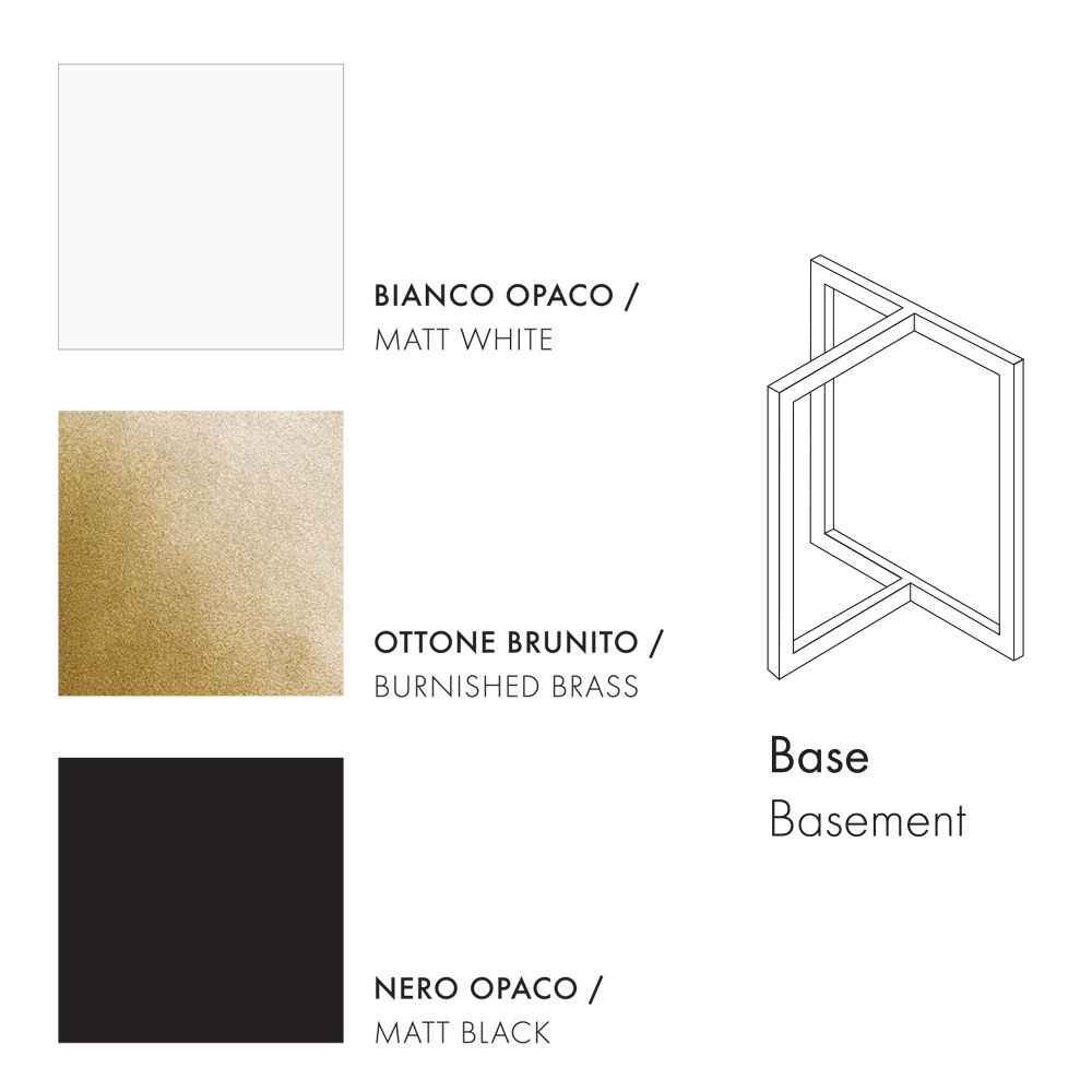vetro laccato (sp.8mm) con bordo bisellato a 45° e struttura in