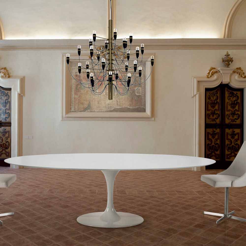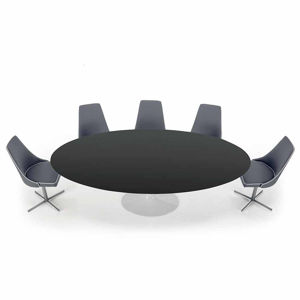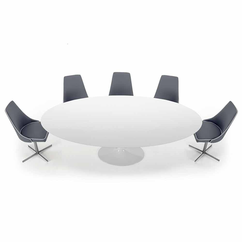 Tavolo da pranzo con piano ovale in laminato liquido realizzato in Italia, alta qualità.