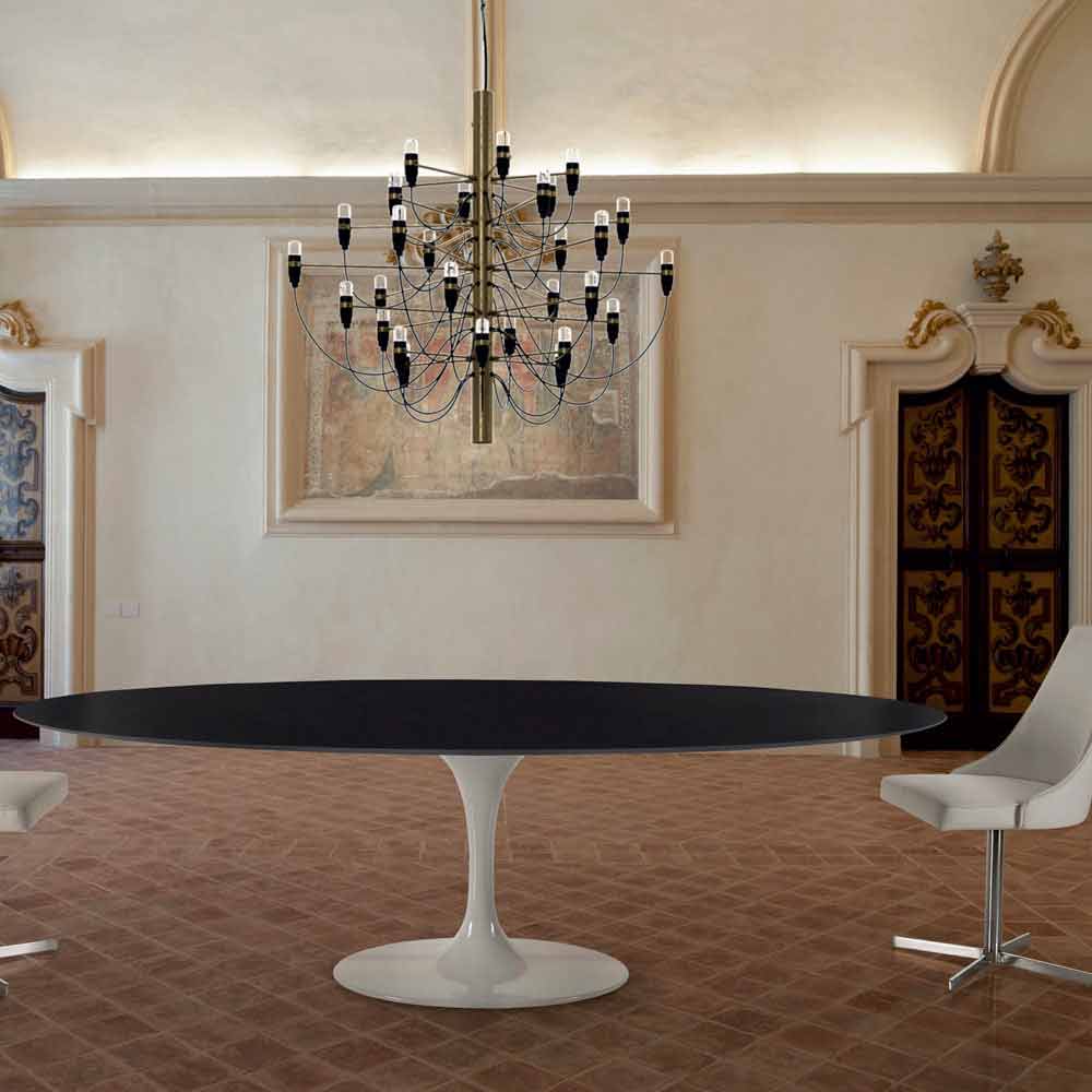 originale forma ovale del piano e alla particolare conformazione della base, la quale racchiude in sè tutta l'unicità di questo meraviglioso tavolo da pranzo. Insieme alla forte componente visiva presenta inoltre uno