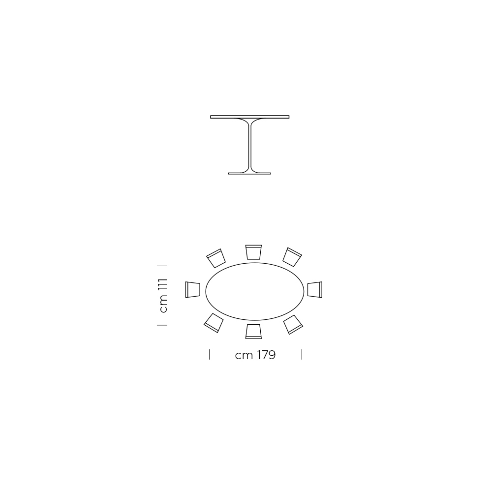 - L 179 x P 111 x H 74,5 cm (8 posti);