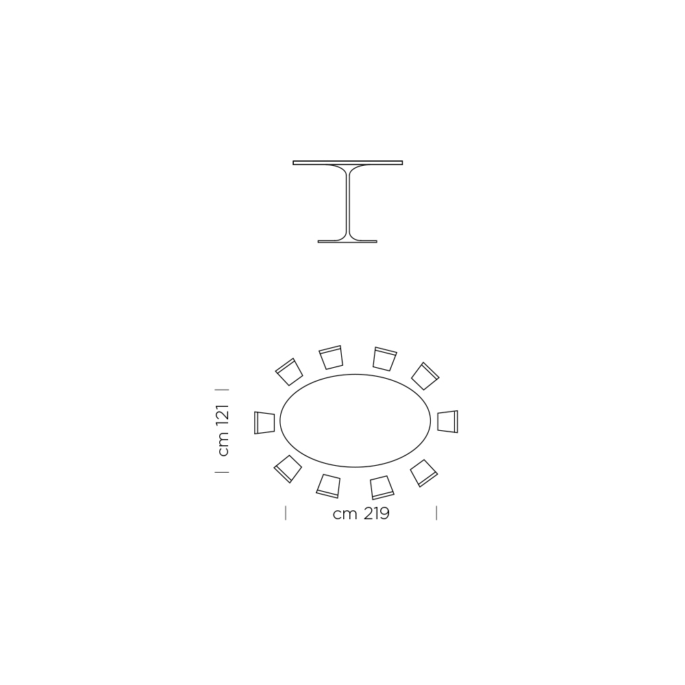 - L 219 x P 121 x H 74,5 cm (10 posti);