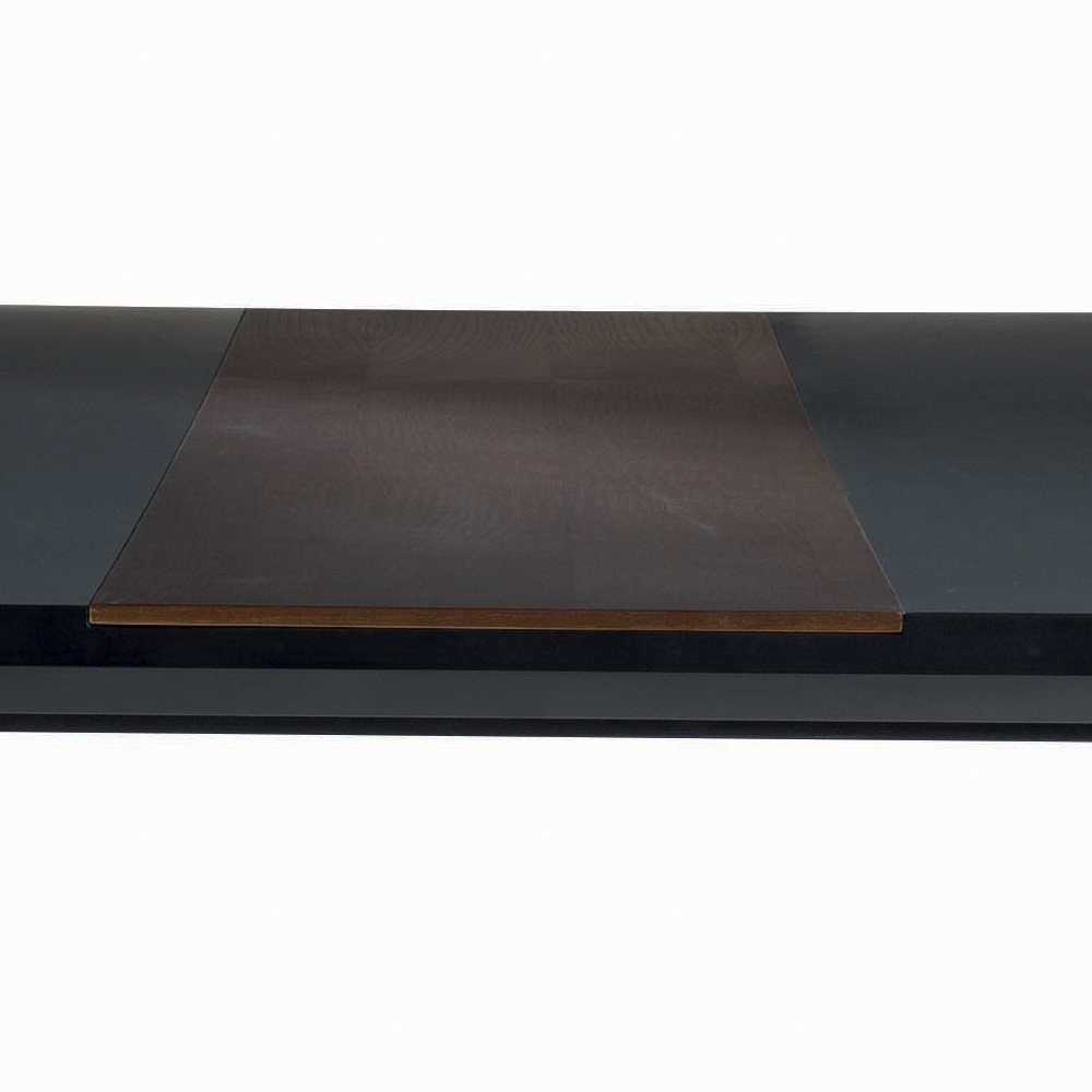 Tavolo da pranzo interamente realizzato in Italia costituito da quattro gambe di supporto in legno massello di faggio finitura frassino tinto e piano in mdf finitura carbone con inserto in legno massello finitura frassino tinto. L'accostamento dei materiali scelti arricchisce questo tavolo da pranzo di forte personalità e gli consente di assicurare solidità, stabilità e un'eccellente durata nel tempo. Il risultato è perciò un tavolo da pranzo moderno e all'avanguardia, contraddistinto da una spiccata versatilità d'uso per arredare con stile ogni situazione domestica.