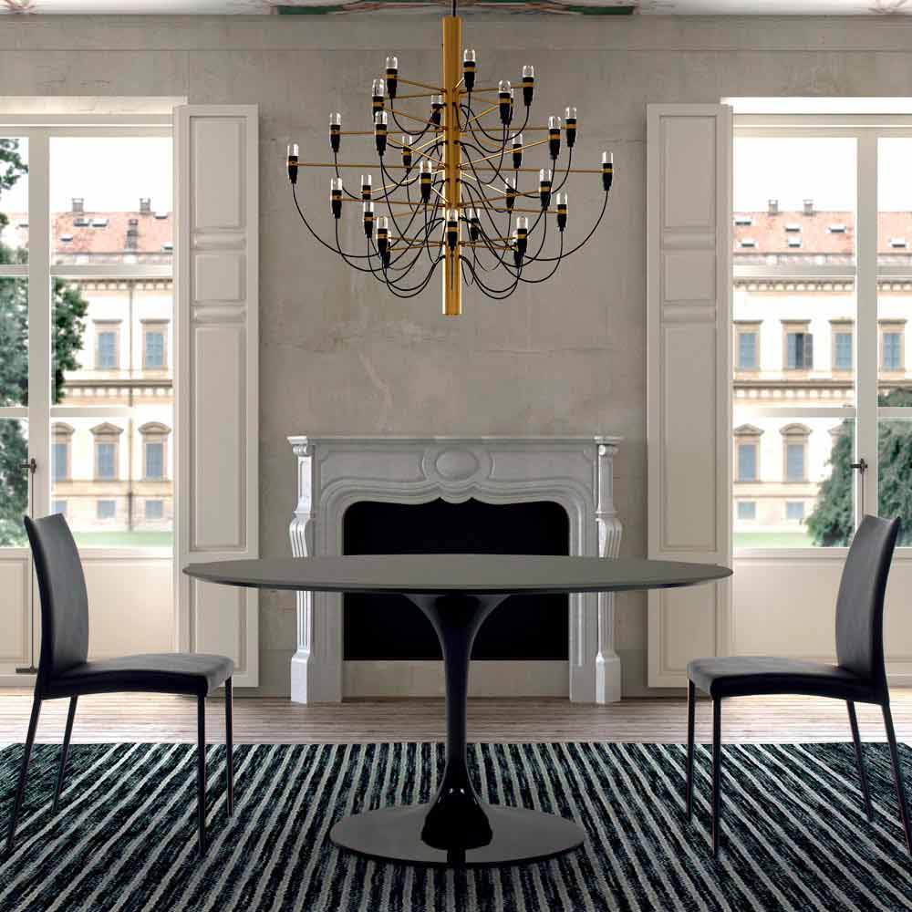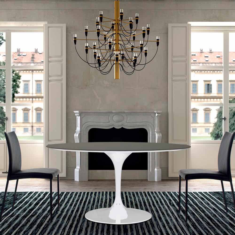 Tavolo da pranzo rotondo in fenix e alluminio laccato Made in Italy, pregiato.