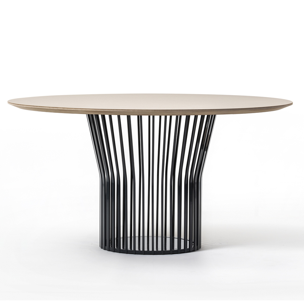 Tavolo da pranzo rotondo con piano in legno Made in Italy.