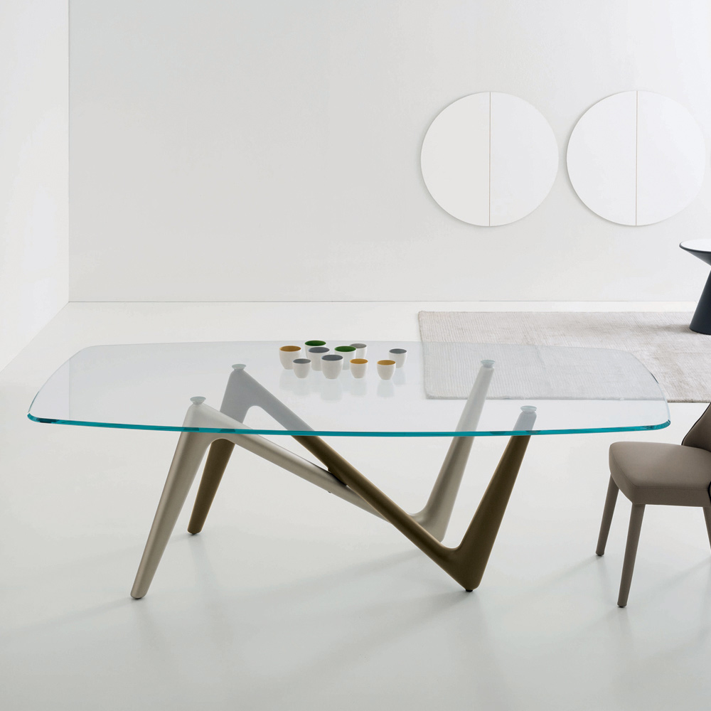 Tavolo da pranzo in vetro trasparente e base in poliuretano, 2 misure made in Italy.