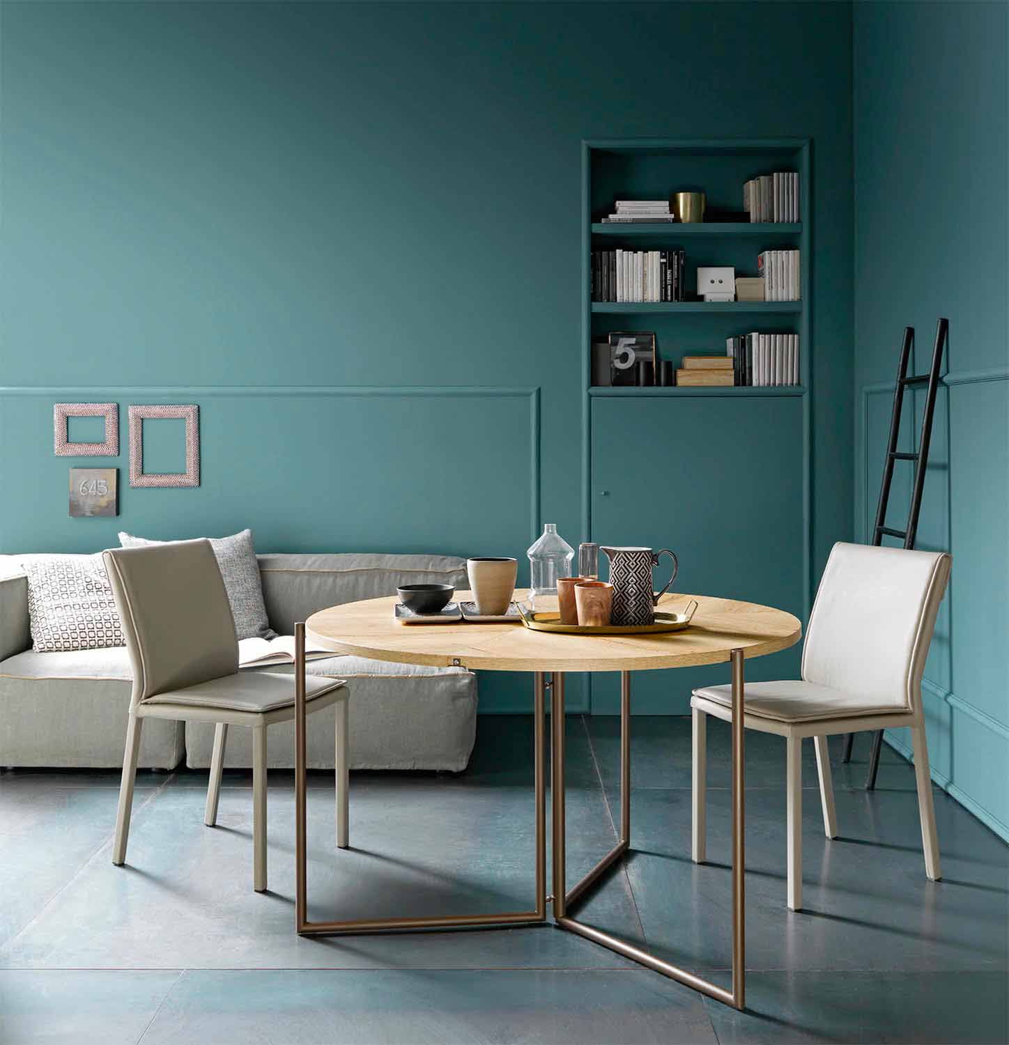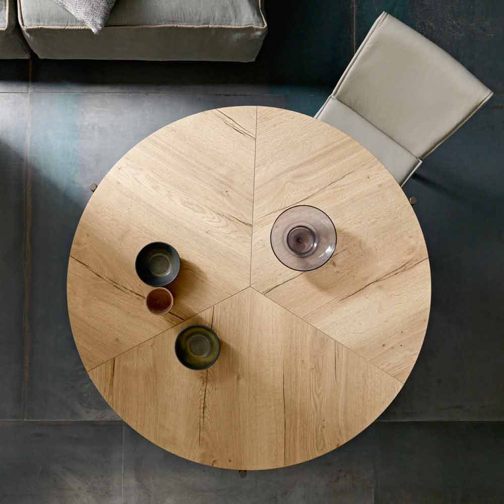 Tavolo da pranzo pieghevole di design con piano in legno nobilitato e base in metallo Made in Italy.