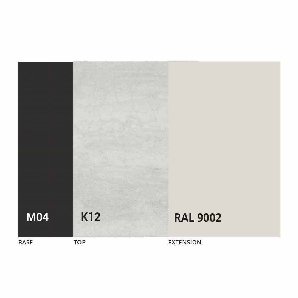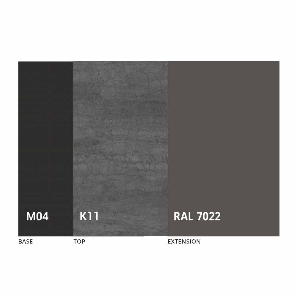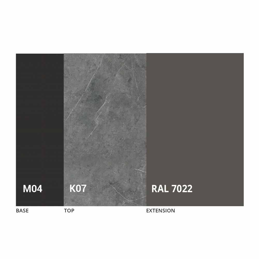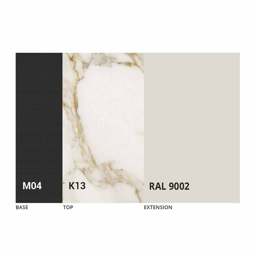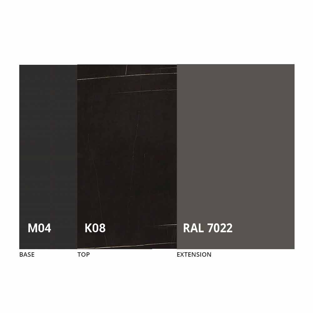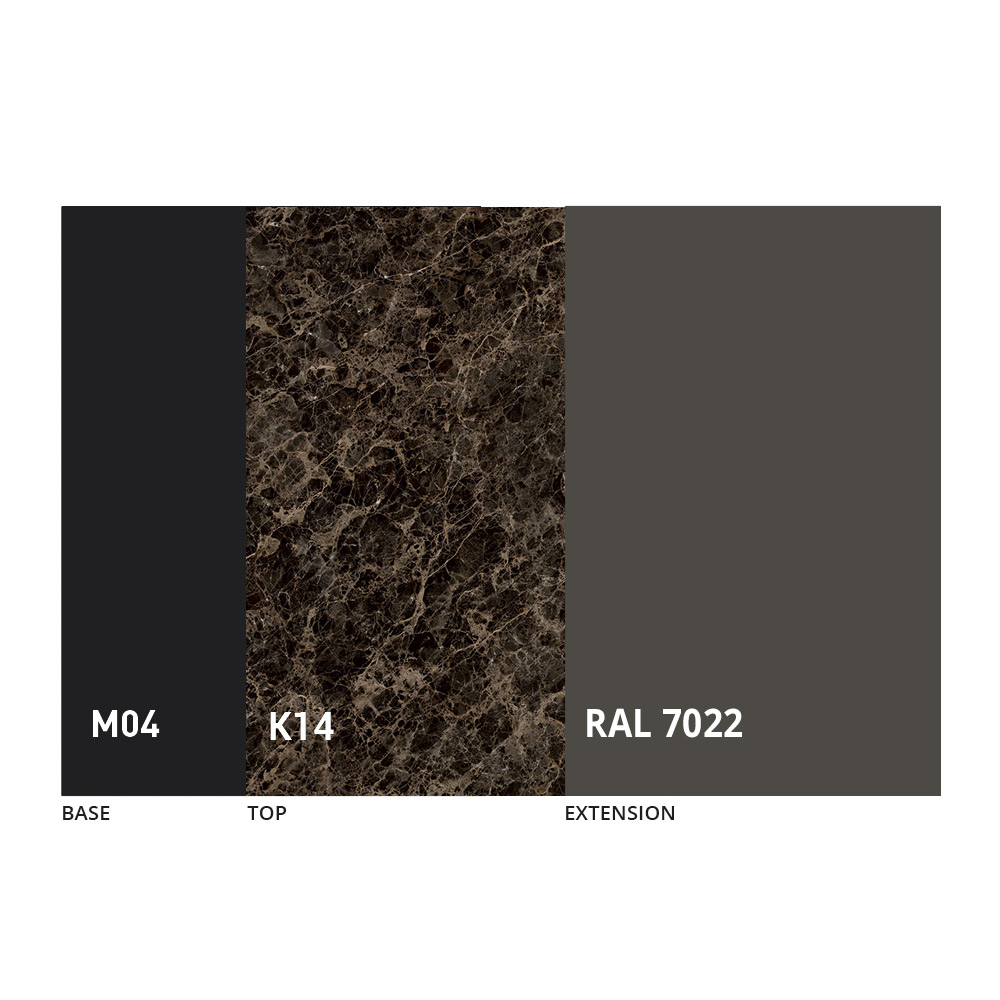 Il piano e la base del tavolo possono essere personalizzati con diverse finiture a campione. Per informazioni contattaci tramite l'apposito form "