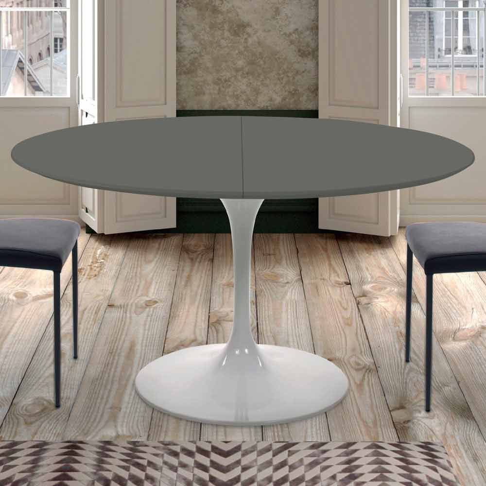 Tavolo da pranzo con piano rotondo allungabile in fenix Made in Italy, di lusso.