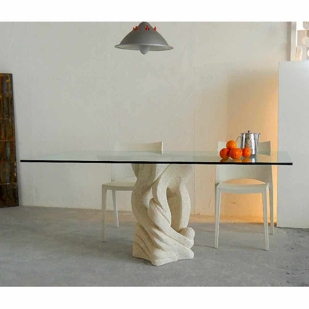 Tavolo da pranzo rettangolare in pietra e cristallo di design Ascanio