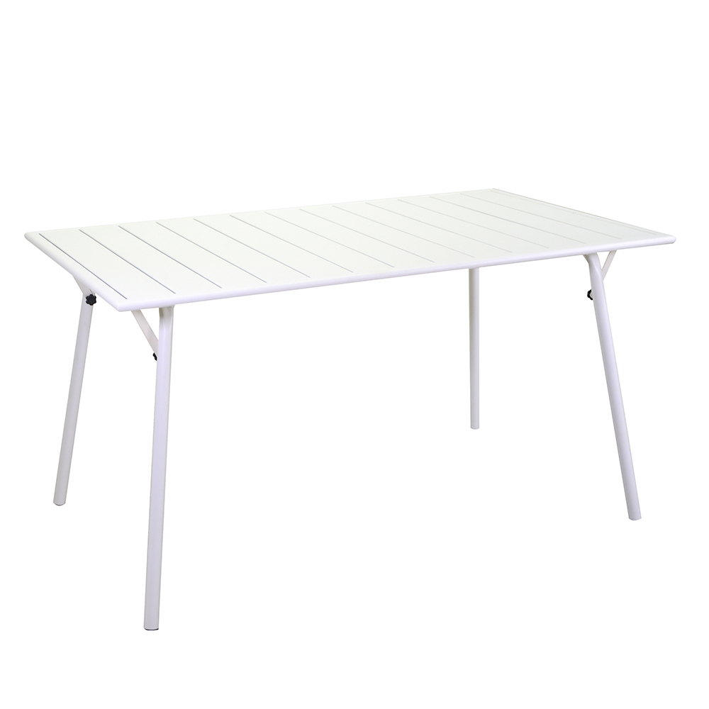 Questo tavolo è l'epitome della funzionalità con un tocco di eleganza minimalista. Questo tavolo rettangolare e pieghevole non è solo una soluzione pratica per risparmiare spazio ma è anche un'aggiunta esteticamente piacevole per qualsiasi ambiente esterno o interno.