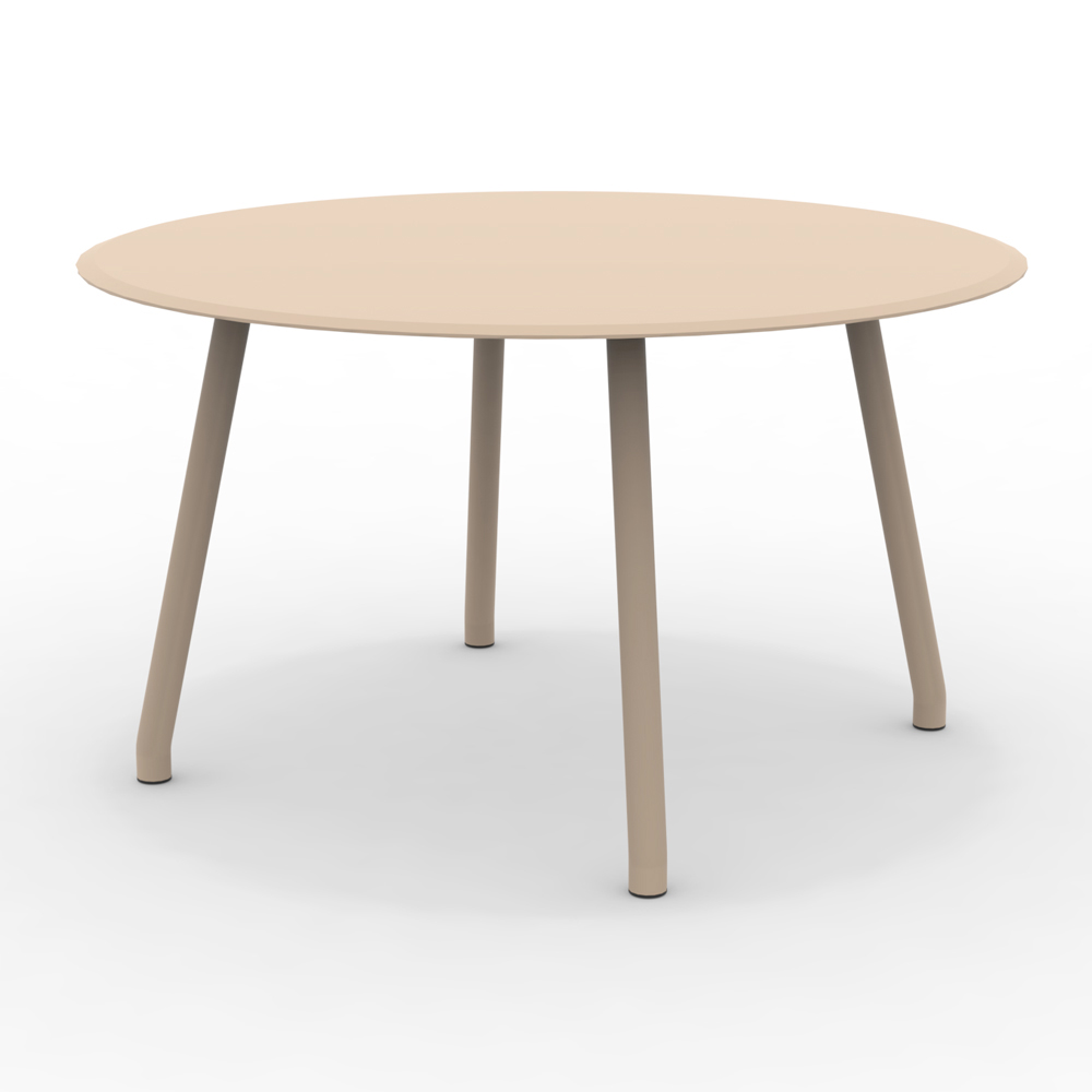 Il suo piano rotondo offre un’ampia superficie d’appoggio, ideale per accogliere amici e familiari durante piacevoli momenti all’aperto. Le gambe leggermente inclinate donano stabilità e un tocco di eleganza, mentre il design minimalista si adatta con facilità a qualsiasi arredamento esterno.