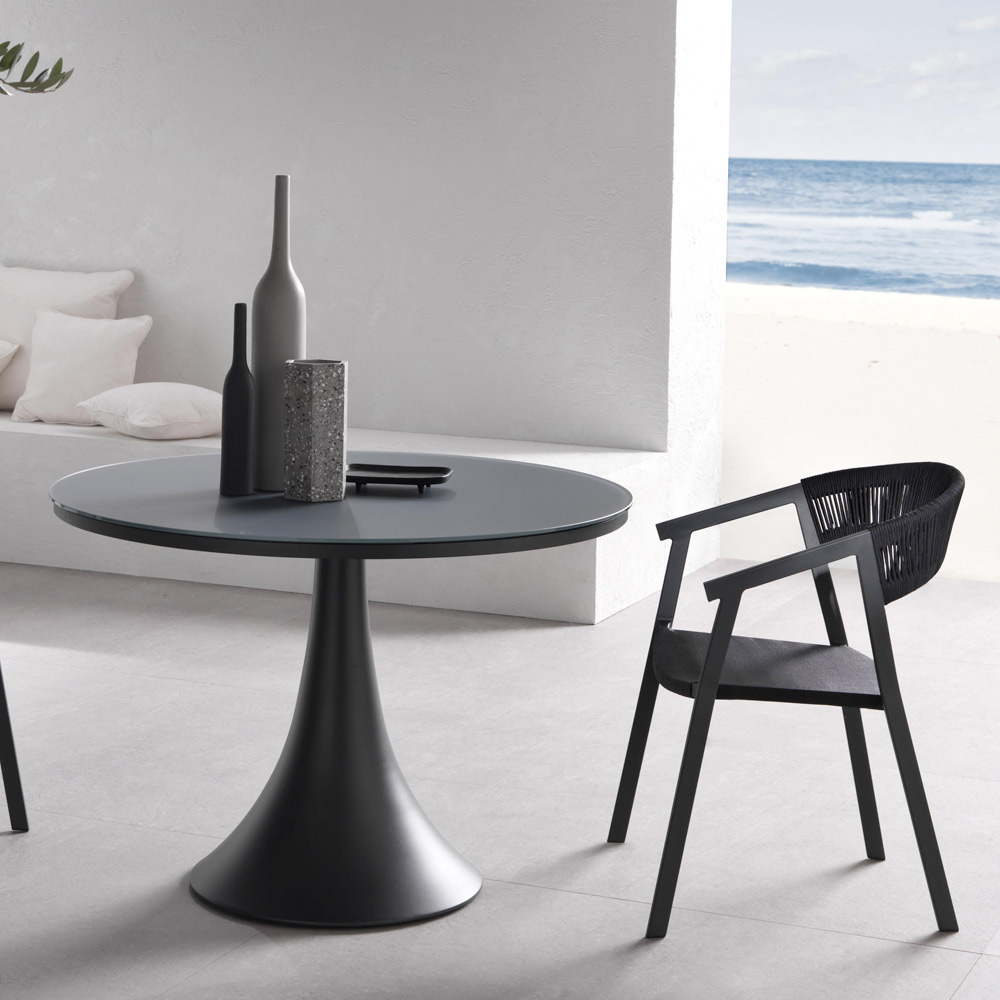 Tavolo Rotondo da Giardino con Struttura in Alluminio Verniciato a Polveri Epossidiche e Top in Vetro Retroverniciato
