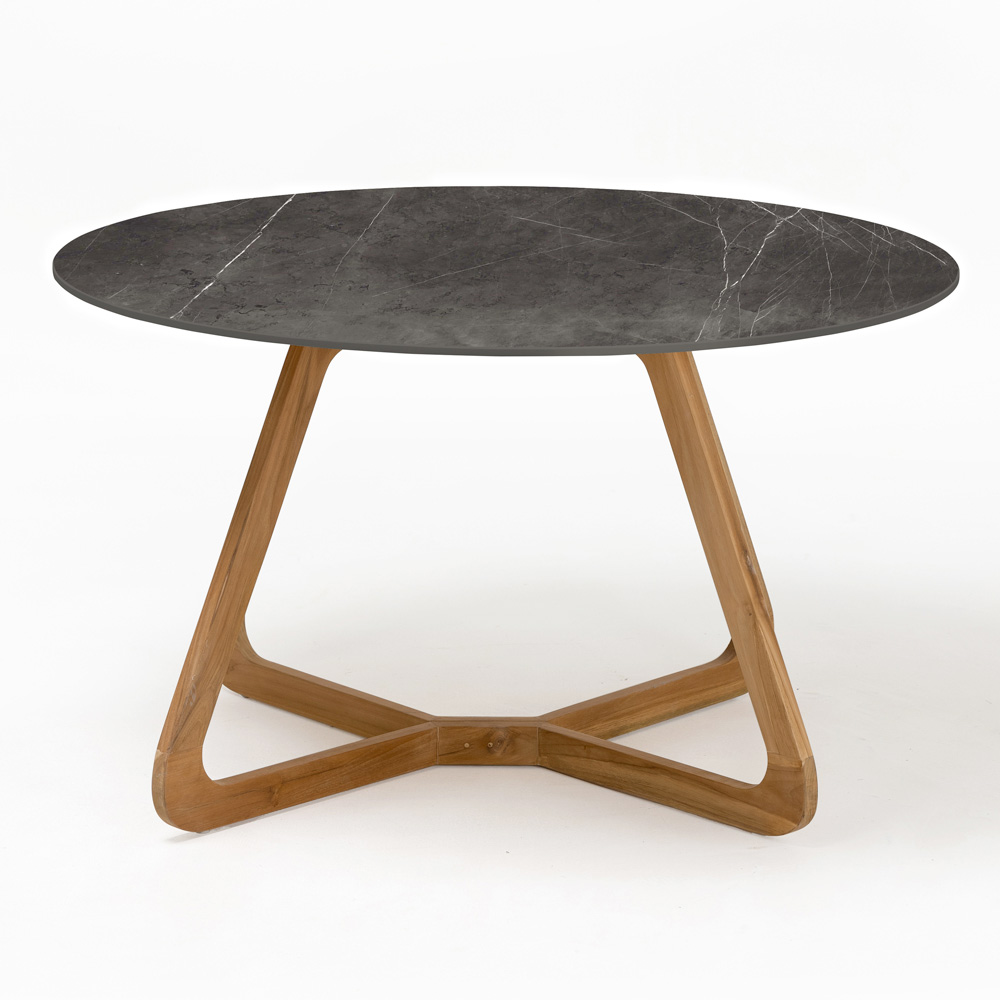 Tavolo rotondo da giardino in legno e ceramica Made in Italy