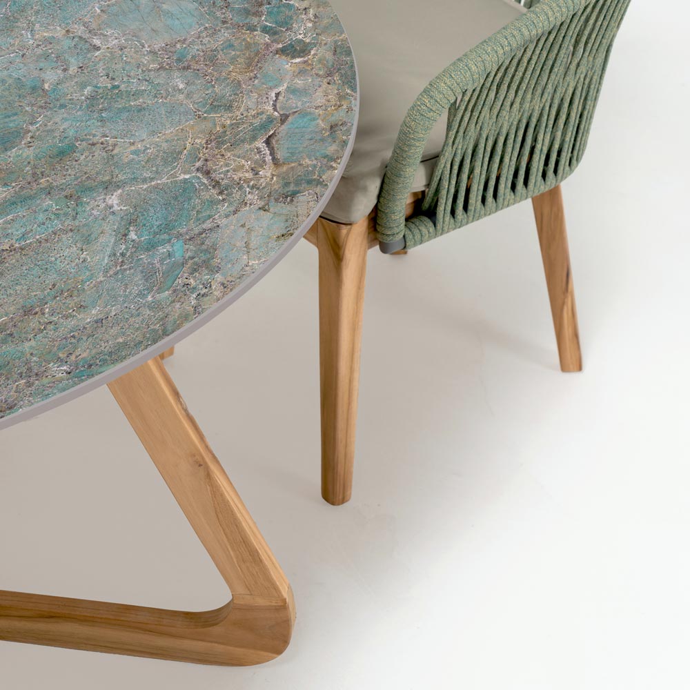 Tavolo rotondo da giardino in legno e ceramica Made in Italy