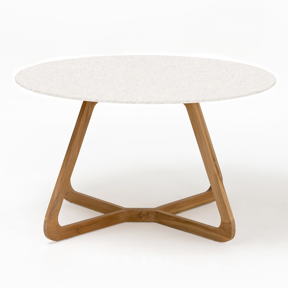Tavolo rotondo da giardino in legno e ceramica Made in Italy