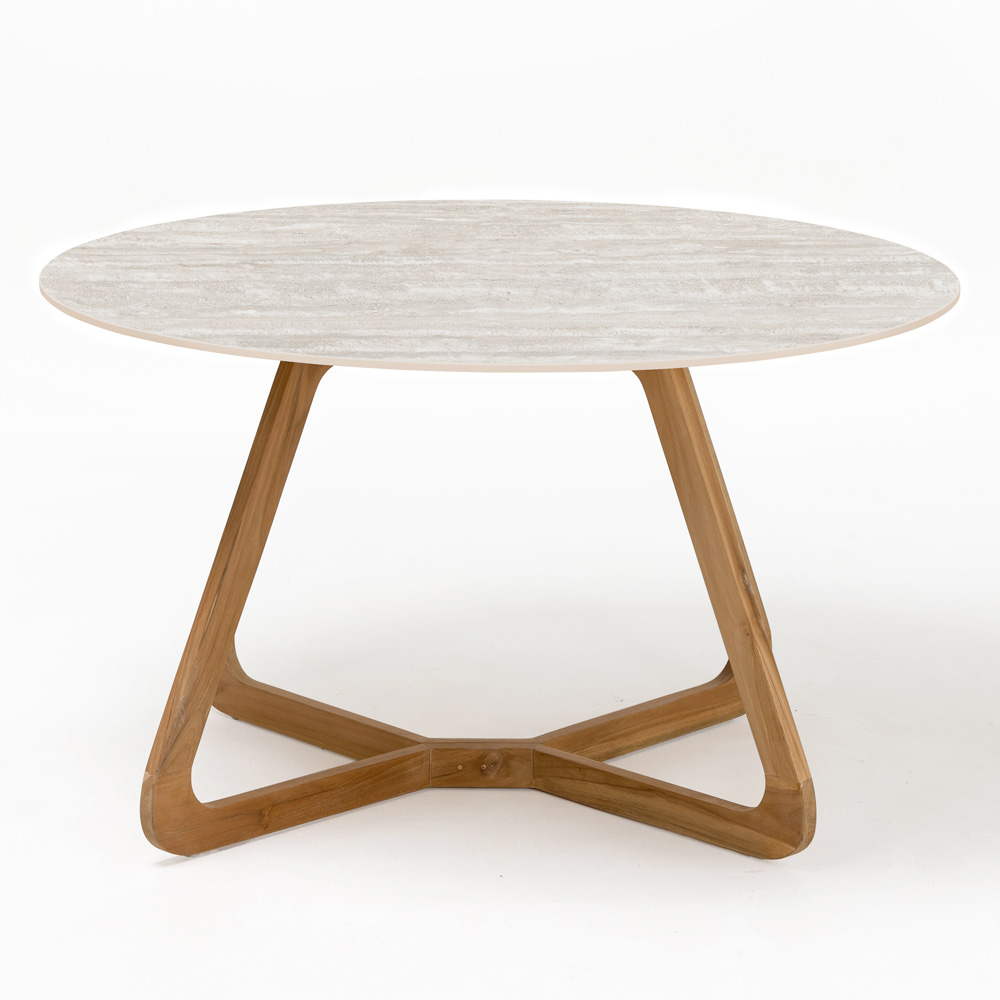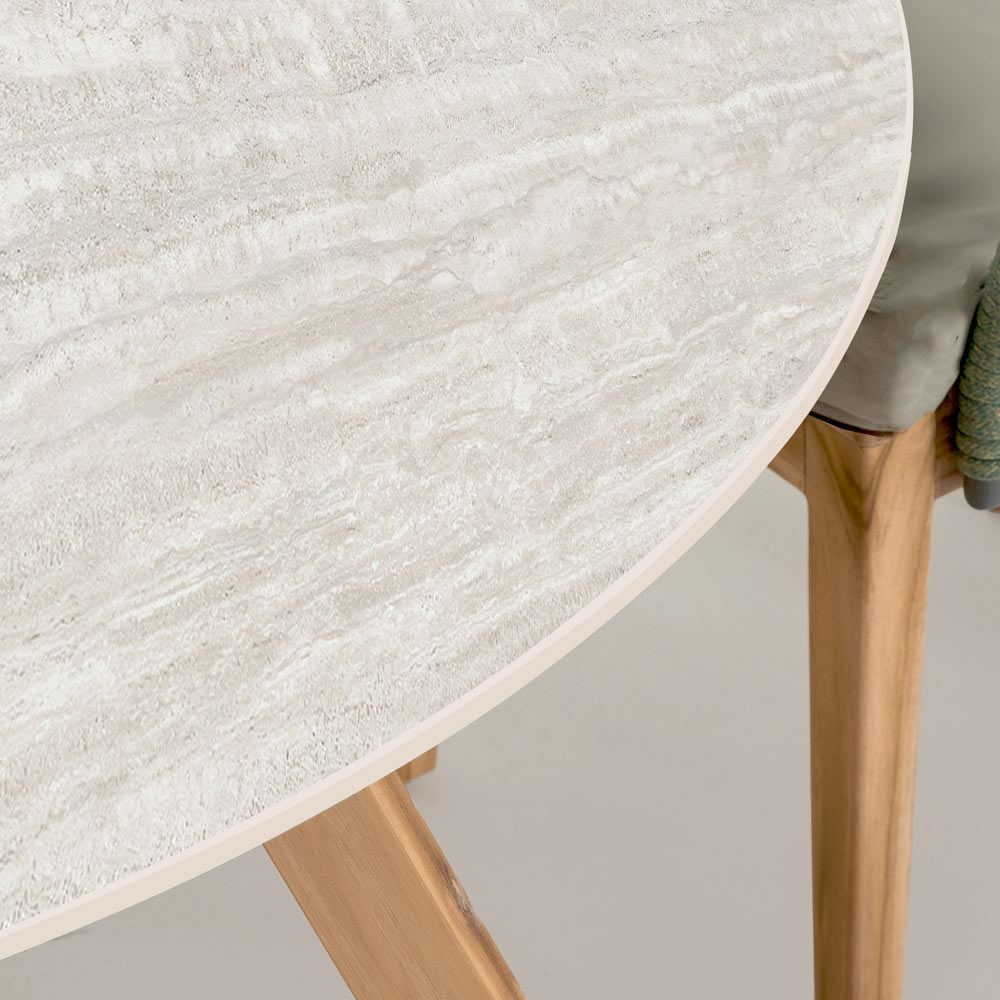 Tavolo rotondo da giardino in legno e ceramica Made in Italy