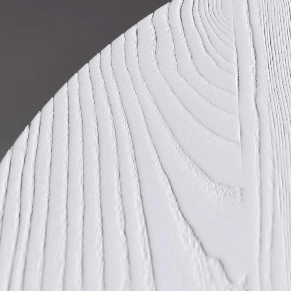 Realizzato in multistrato impiallacciato in frassino termotrattato, il tavolo valorizza la naturale venatura del legno, esaltandone il carattere materico e la profondità cromatica. È disponibile anche in variante laccata bianco o nero, per adattarsi con versatilità a stili diversi, dal minimal al più deciso e grafico.