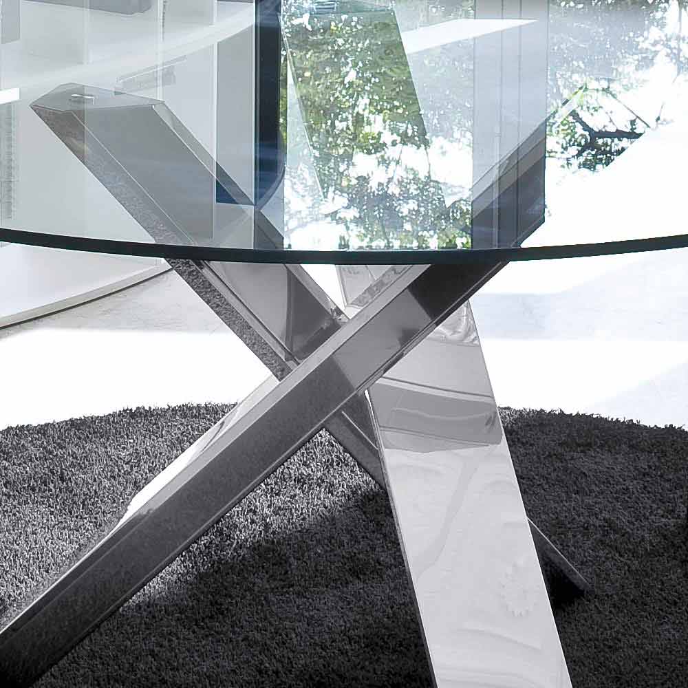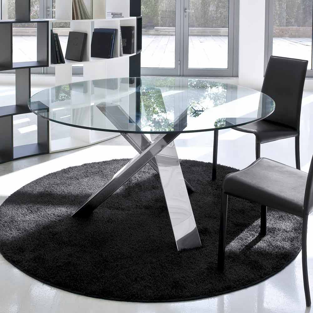 Tavolo tondo di design D 150 piano in cristallo made in Italy Cristal