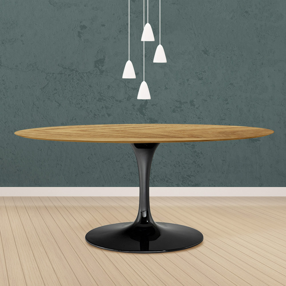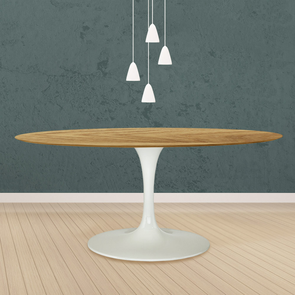 Tavolo da pranzo ovale in rovere naturale e base in alluminio lucido Made in Italy