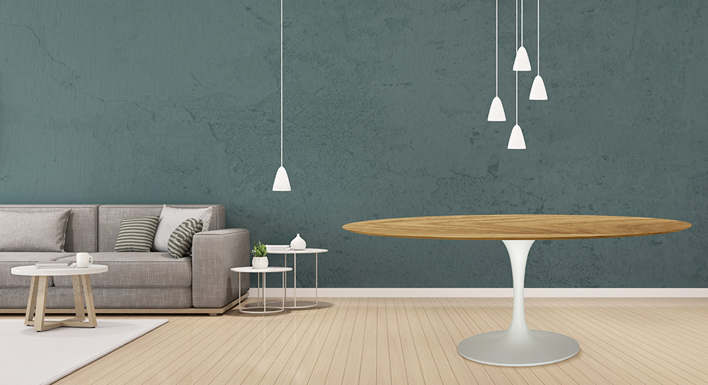 forma ovale e irovere naturale depiano conferisce a questo tavolo un