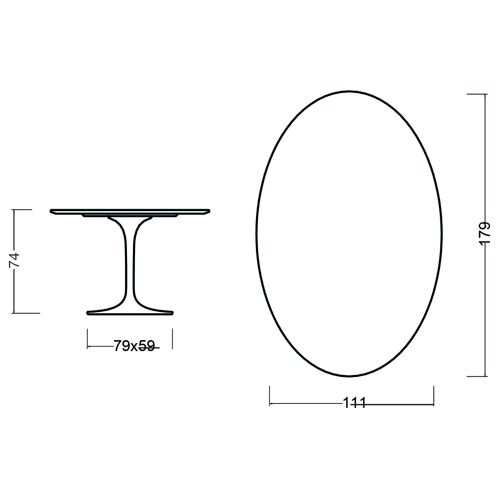 Tavolo da pranzo con piano ovale in