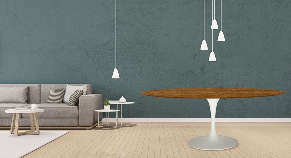 forma ovale e irovere tinto noce chiaro depiano conferisce a questo tavolo un