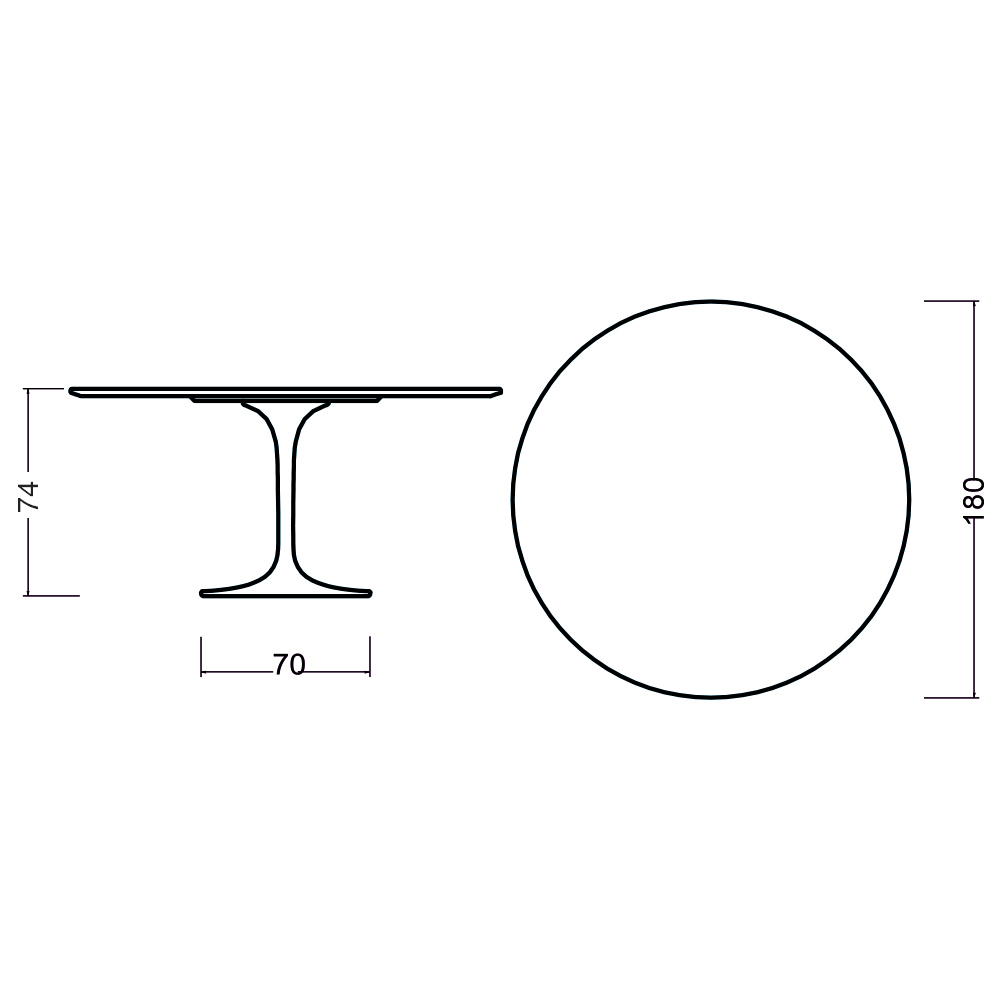 - Diametro piana tavolo 180 x altezza 74 cm / Diametro basamento 70 cm