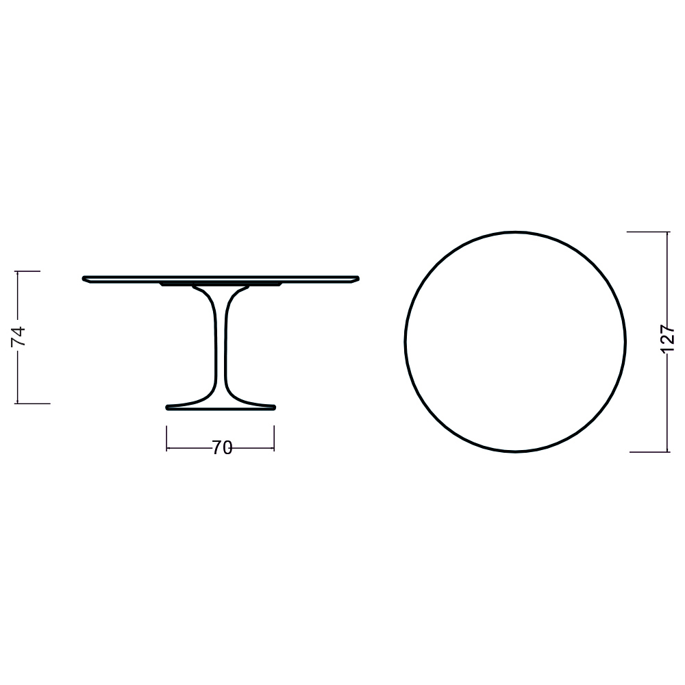 - Diametro piana tavolo 127 x altezza 74 cm / Diametro basamento 70 cm