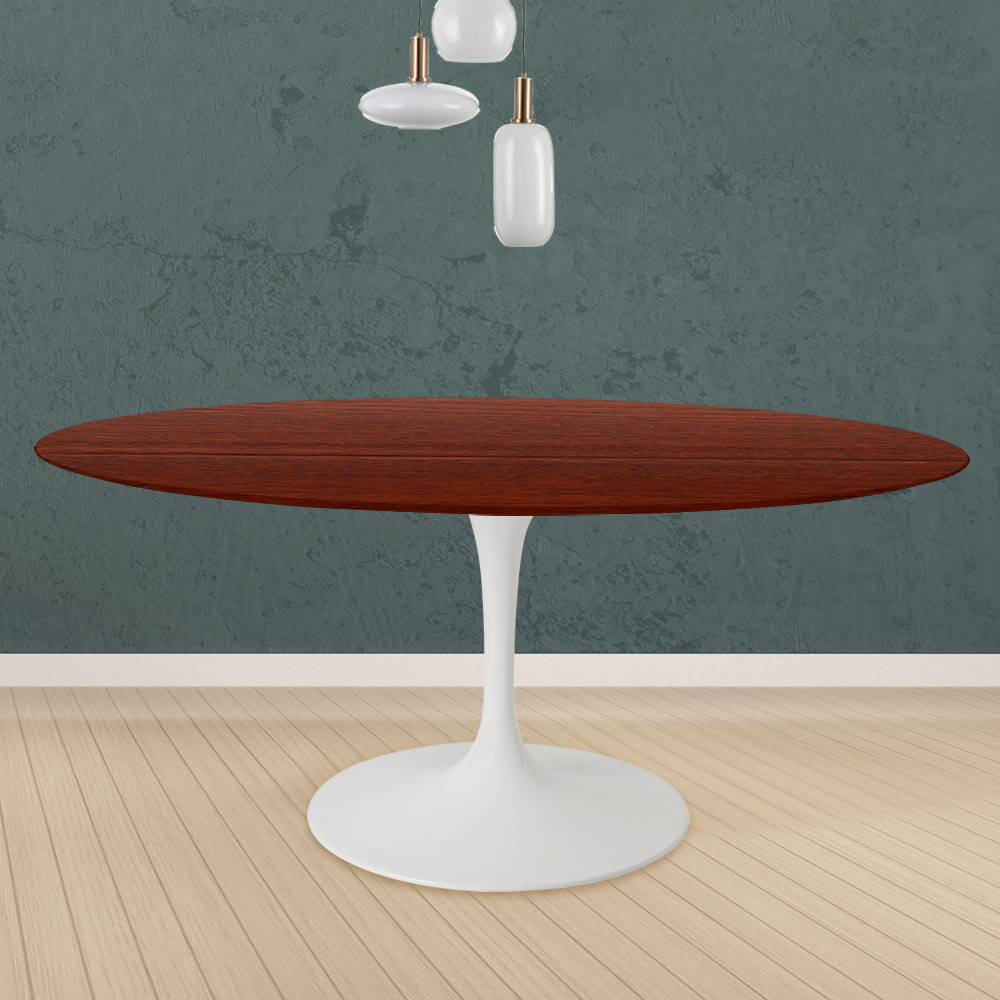 Tavolo da pranzo rotondo in rovere tinto palissandro e base in alluminio lucido Made in Italy