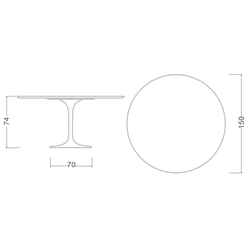 - Diametro piana del tavolo 150 x H 73 cm / Diametro del basamento 70 cm