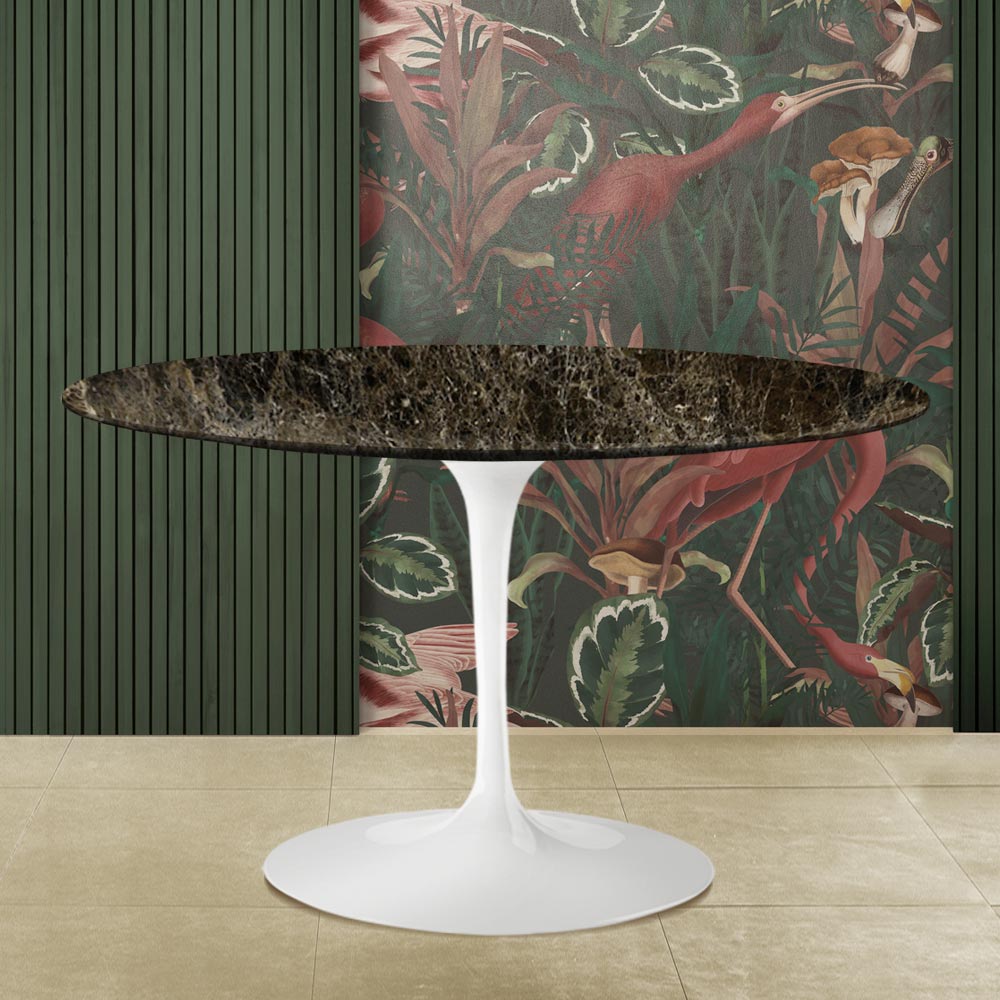 Tavolo da pranzo rotondo in marmo emperador dark e alluminio lucido Made in Italy