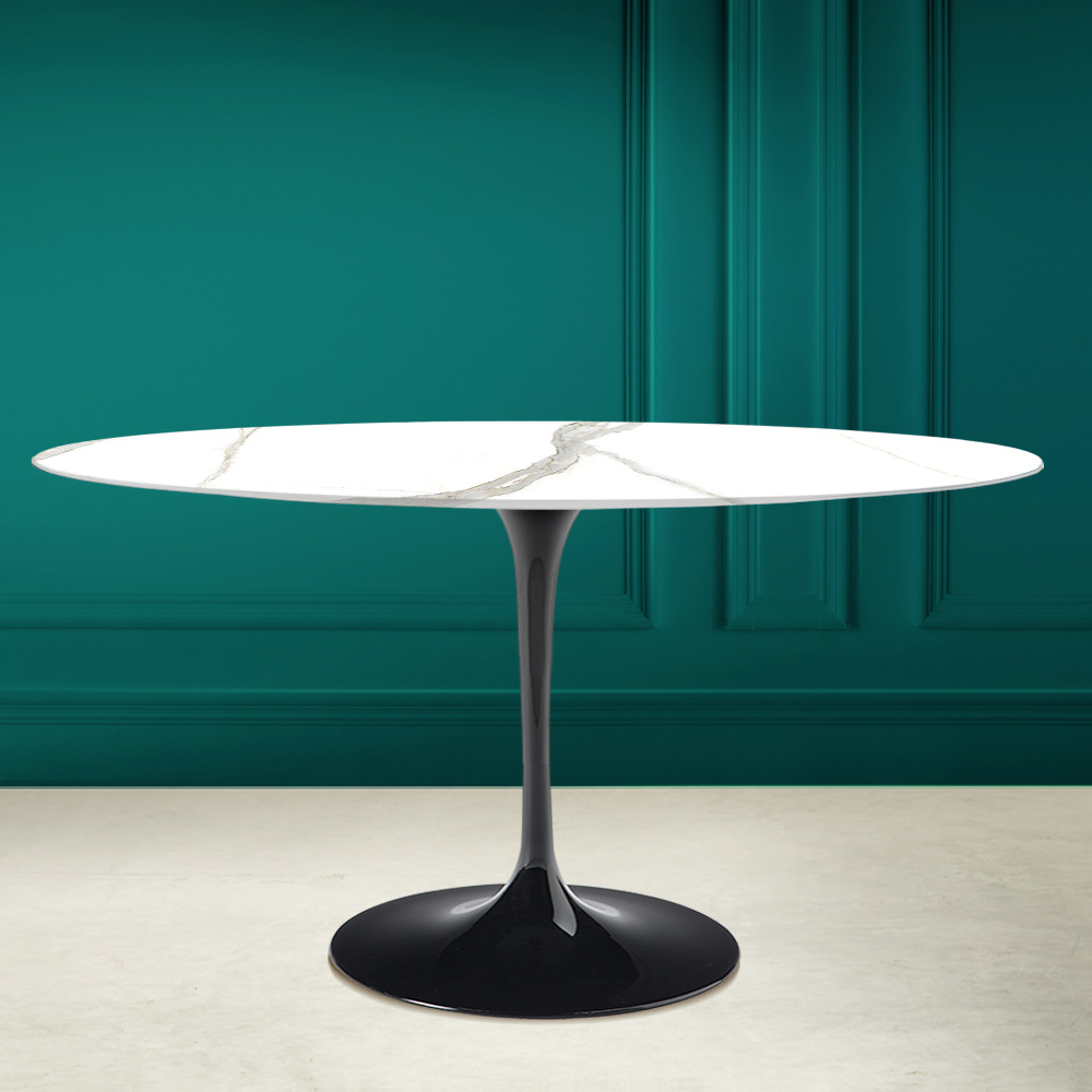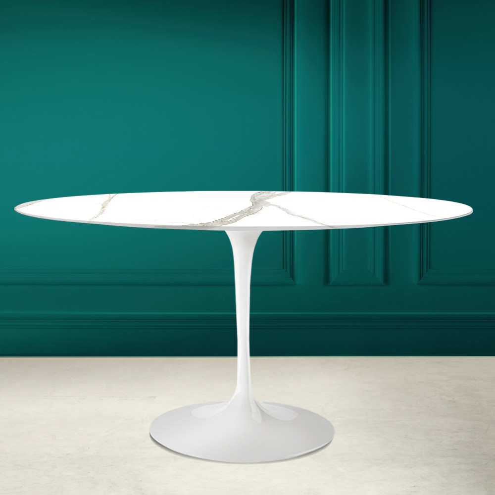 Tavolo da pranzo con piano ovale in ceramica calacatta michelangelo Made in Italy