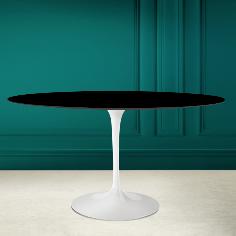 Made in Italy. Questo tavolo ha due caratteristiche che lo rendono unico nesuo genere: la forma ovale e la ceramica nero assoluto.