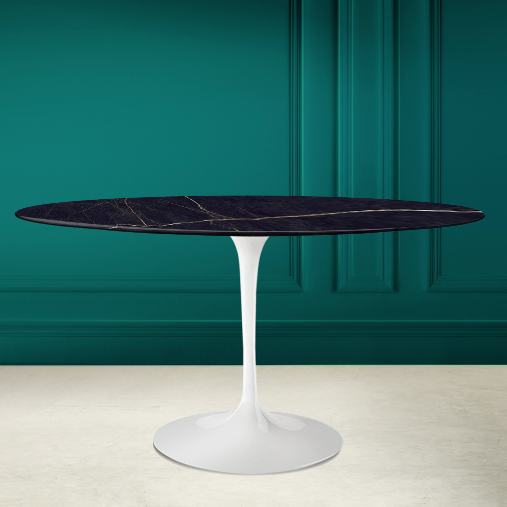 alluminio lucido. Questo tavolo è l'elemento perfetto per dare un tocco originale a qualsiasi ambiente living e cucina grazie alla forma ovale e alla ceramica noir laurent. La