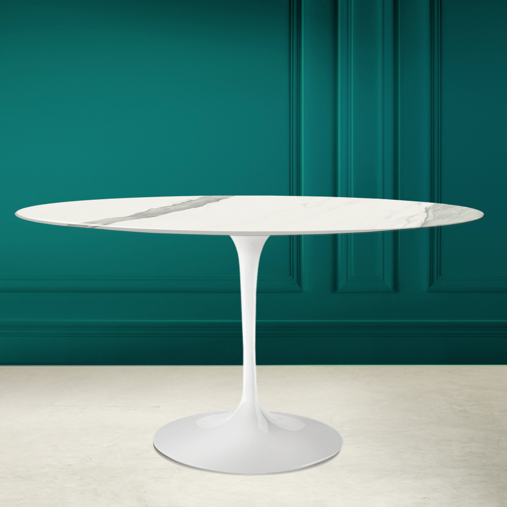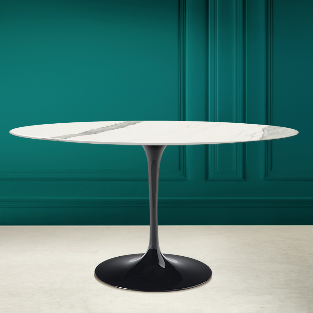 alluminio lucido. Questo tavolo è l'elemento perfetto per dare un tocco originale a qualsiasi ambiente living e cucina grazie alla forma ovale e alla ceramica statuario fulvein. La
