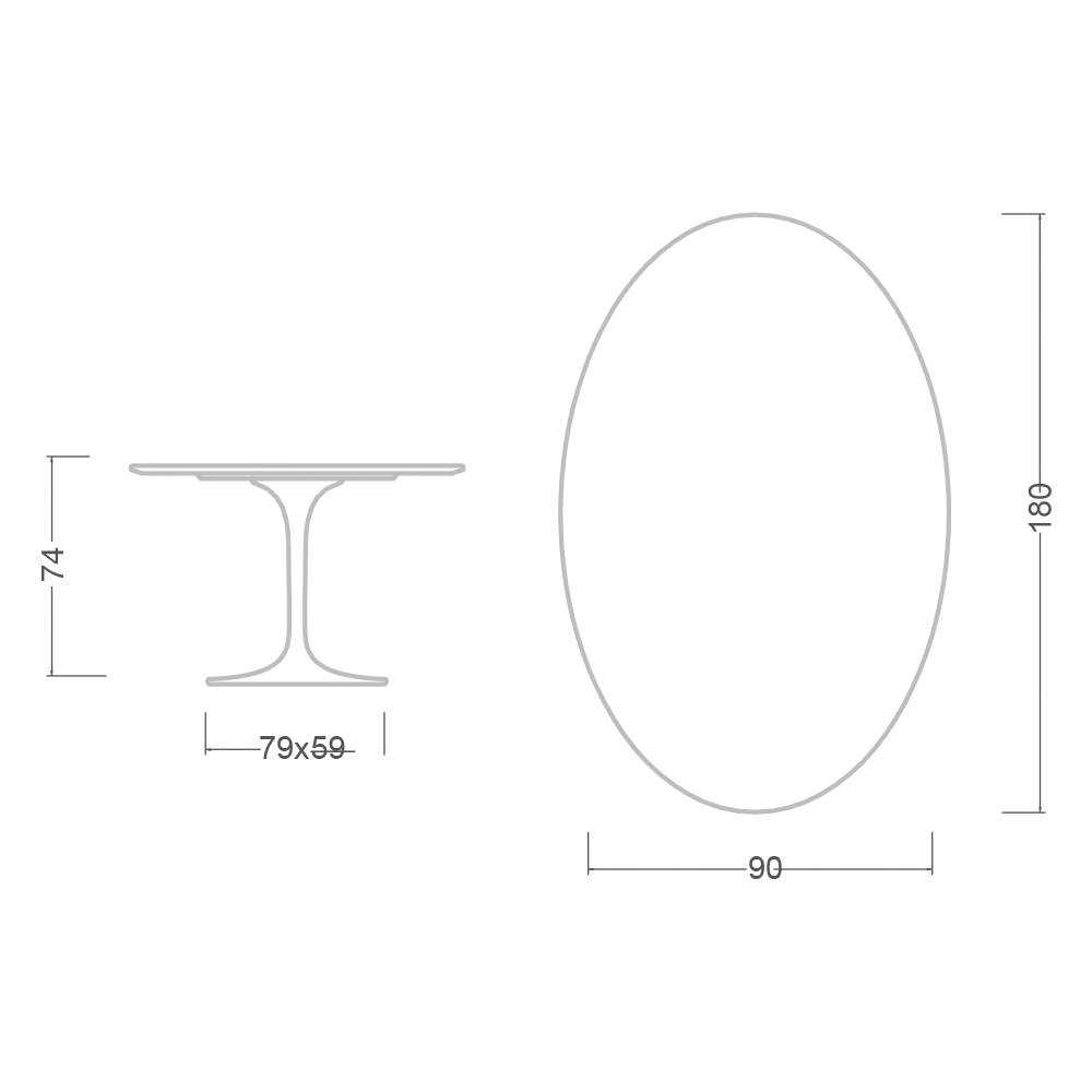 - Piana detavolo: 180 x 90 / Basamento ovale: 79 x 59 cm x H 73 cm