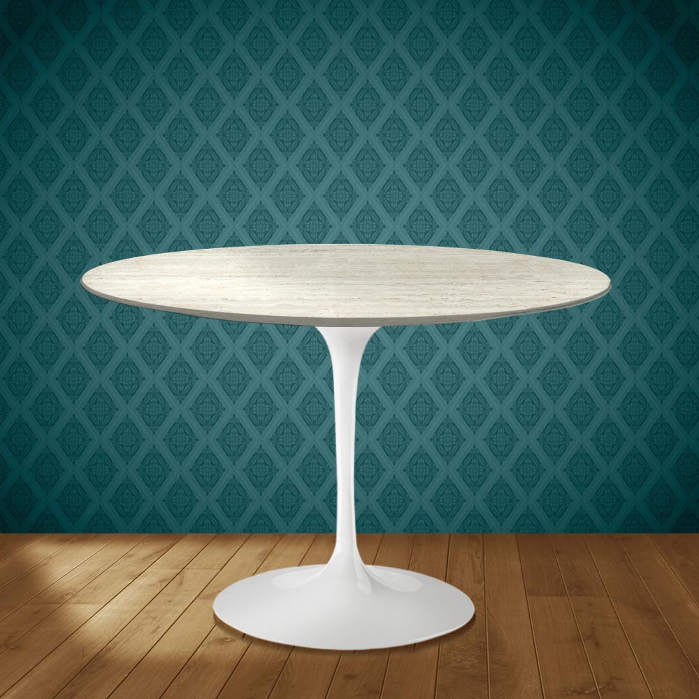 Tavolo da pranzo interamente Made in Italy con piano rotondo in ceramica marmorio, effetto marmo travertino opaco, e base in alluminio lucido. Questo tavolo riesce a unire la funzionalità e la praticità con l'eleganza e la raffinatezza grazie alle sue finiture semplici e la particolare ceramica marmorio. Iprodotto ha una forma lineare e raffinata che lo rende adatto a completare l'arredamento di qualsiasi ambiente living e cucina dando un tocco unico. La ceramica marmorio ha una colorazione e una grafica molto complesse e sofisticate che contribuiscono a rendere la stanza accogliente e indimenticabile. Questo tavolo è l'idea perfetta per arredare con gusto e funzionalità ogni luogo.