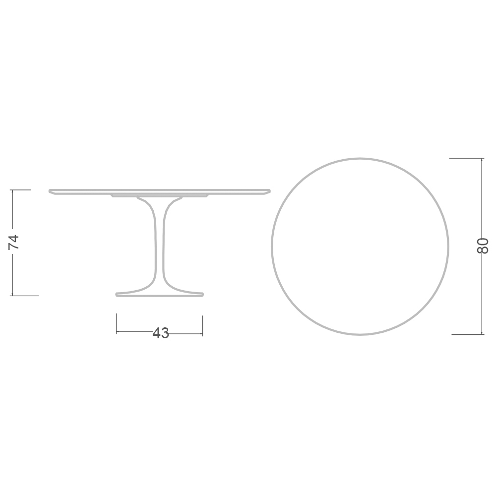 - Diametro piana detavolo 80 x altezza 74 cm;