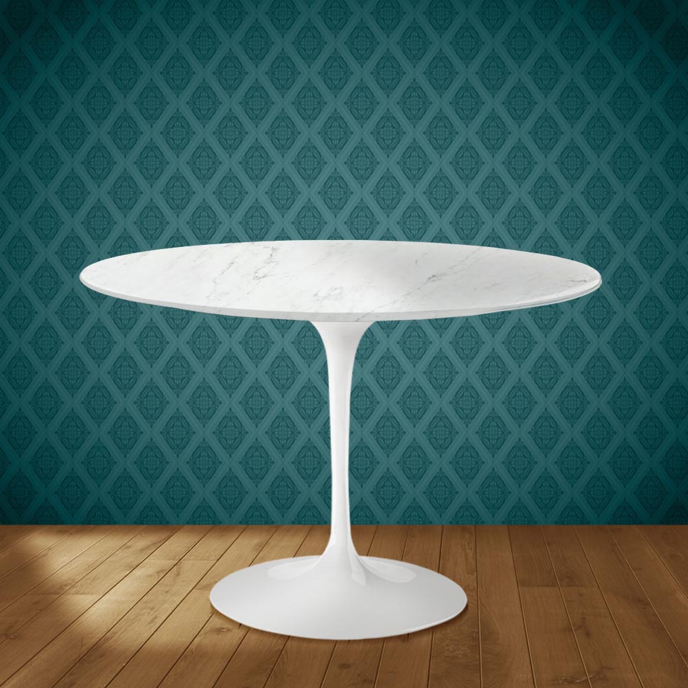 Tavolo da pranzo interamente Made in Italy con piano rotondo in ceramica salina, effetto marmo carrara lucido, e base in alluminio lucido. Questo tavolo riesce a unire la funzionalità e la praticità con l'eleganza e la raffinatezza grazie alle sue finiture semplici e la particolare ceramica salina. Iprodotto ha una forma lineare e raffinata che lo rende adatto a completare l'arredamento di qualsiasi ambiente living e cucina dando un tocco unico. La ceramica salina ha una colorazione e una grafica molto complesse e sofisticate che contribuiscono a rendere la stanza accogliente e indimenticabile. Questo tavolo è l'idea perfetta per arredare con gusto e funzionalità ogni luogo.