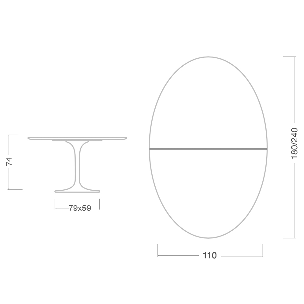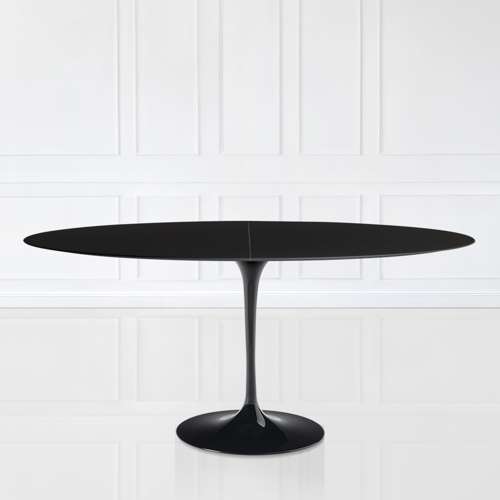 Tavolo da pranzo allungabile fino a 240 cm interamente realizzato in Italia con piano ovale in laminato liquido nero e basamento in alluminio lucido nero. La particolare forma ovale e le finiture semplici e lineari rendono questo elemento un perfetto complemento d'arredo da inserire in ogni ambiente living e cucina per renderlo moderno e originale. Ê perfetto per invitare ospiti grazie alla possibilità di essere allungato e alla forma debasamento che permette l'inserimento di diverse sedie rimanendo sempre elegante e innovativo. I materiali usati per la realizzazione conferiscono a questo tavolo qualità e resistenza anche con ipassare detempo rendendolo un elemento perfetto per tutte gli eventi e occasioni d'uso.