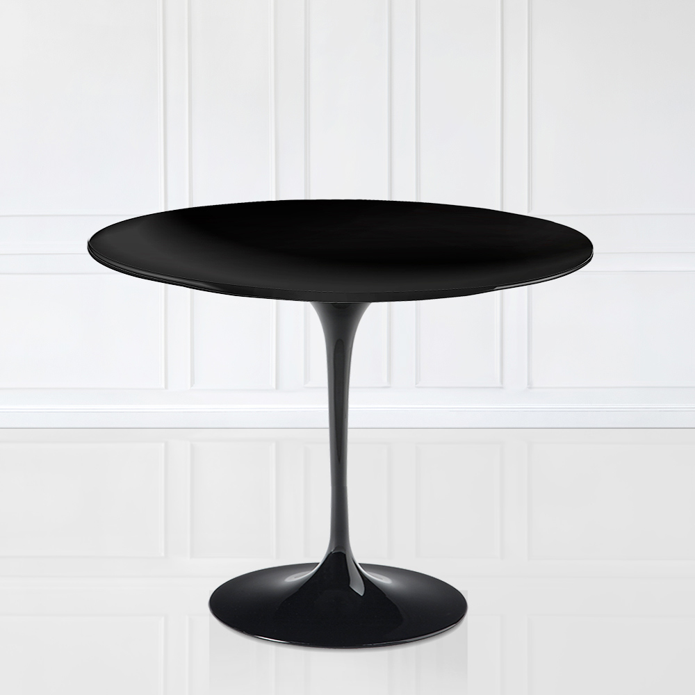 Tavolo da pranzo con piano rotondo in laminato liquido nero e basamento in alluminio lucido nero interamente realizzato in Italia. Ê fondamentale scegliere con attenzione itavolo da pranzo in quanto viene inserito neluogo più caldo e accogliente della casa e deve creare una perfetta commistione con l'abiente circostante: la versatilità di questo tavolo permette di farlo in qualsiasi luogo. Idesign seducente e raffinato di questo elemento permette di arredare con gusto e raffinatezza ogni genere di ambiente living e cucina grazie alla forma rotonda la quale dà un tocco di originalità alla stanza fornendo freschezza e linearità allo stile. Ipiano in laminato liquido e ibasamento in alluminio lucido rendono itavolo adatto e funzionale per ogni occasione d'uso ed è ideale per completare con sobrietà ogni stanza grazie alle finiture semplici ed essenziali.