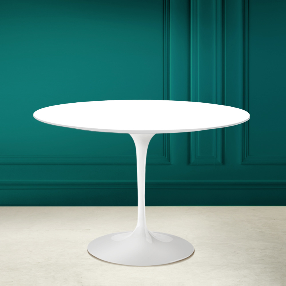 Tavolo da pranzo con piano rotondo in ceramica bianco assoluto Made in Italy