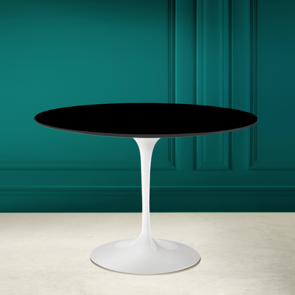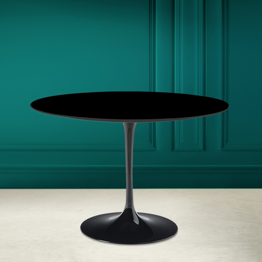 Tavolo da pranzo con piano rotondo in ceramica nero assoluto Made in Italy